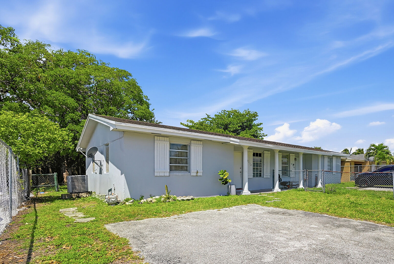 Fence, Gate, Lawn, Parking Pad, Porch, Stucco Siding, Central Ac, Parking Pad