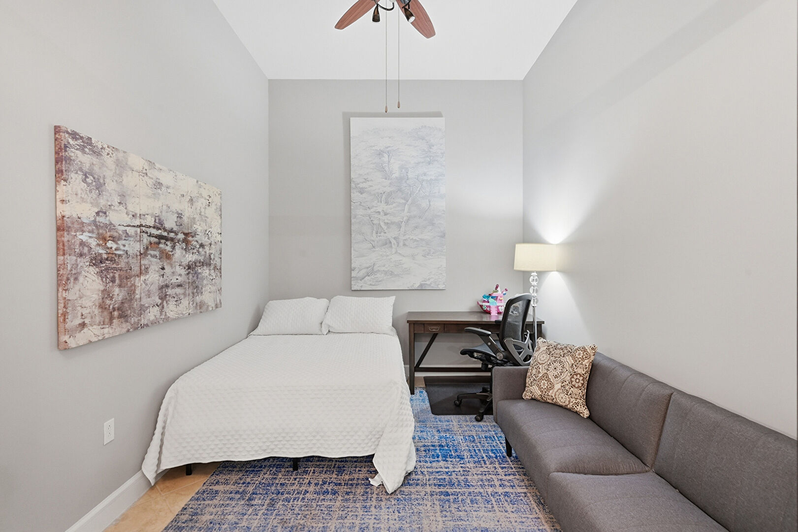 Baseboards Wall, Ceiling Fan, Drywall, High Ceiling, Tile Floor, Vent, Wood Finish Floor, Baseboards Wall, Closet, Drywall, Wood Finish Floor