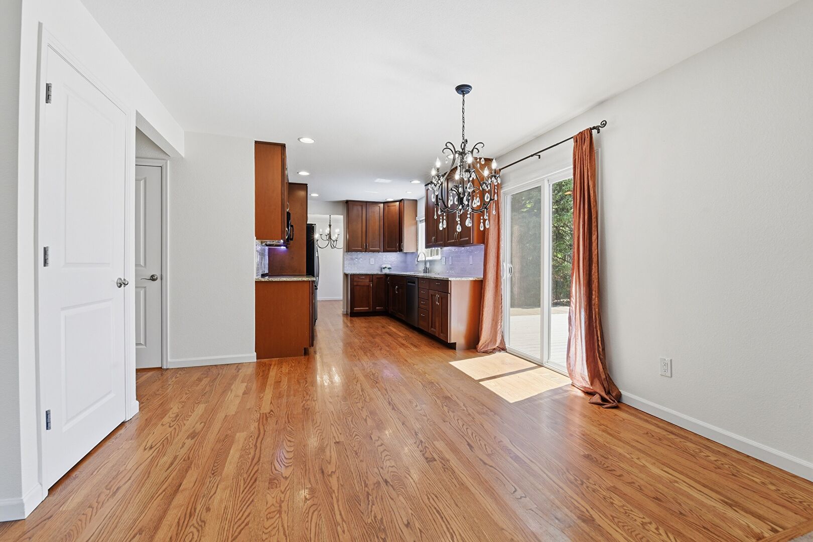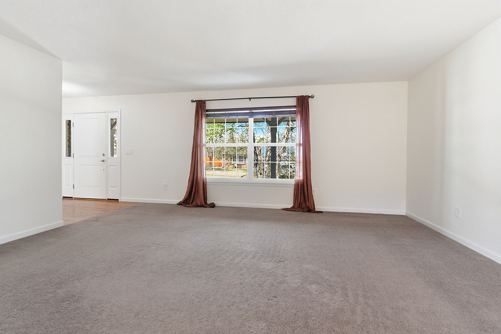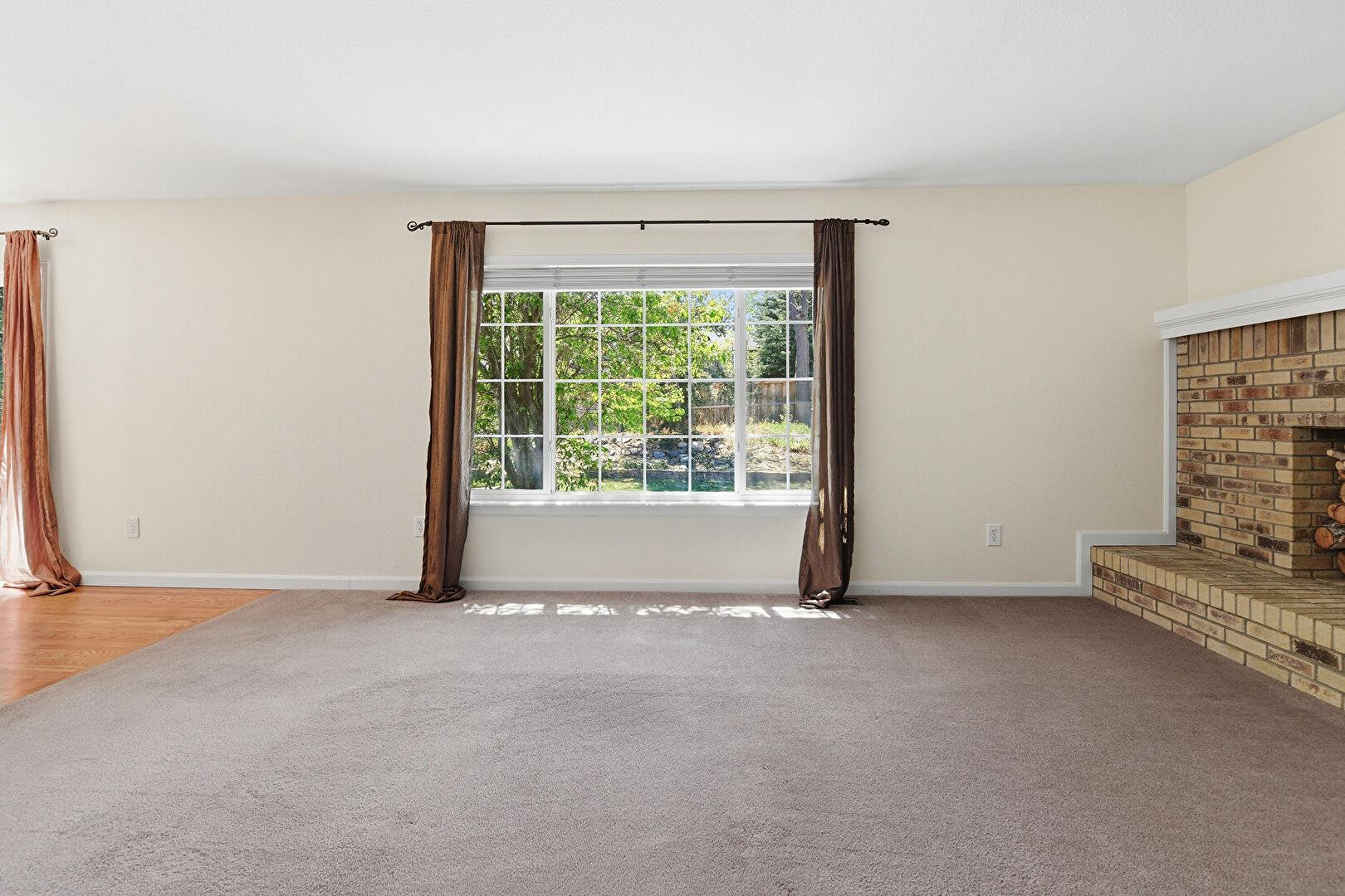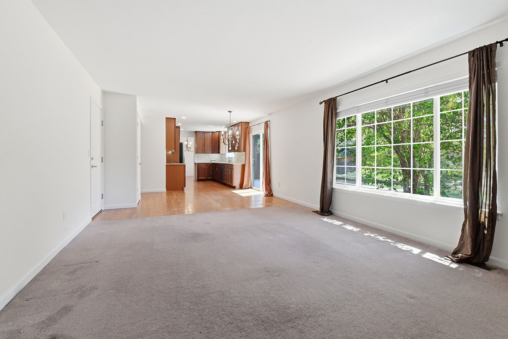 Baseboards Wall, Carpet, Drywall, Fireplace, Natural Light, Notable Chandelier, Baseboards Wall, Carpet, L Shaped Kitchen