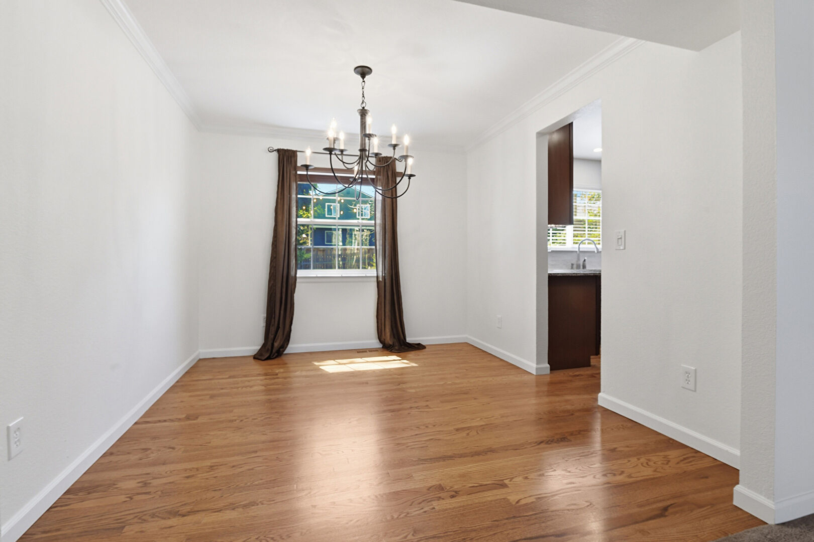 Baseboards Wall, Crown Molding, Drywall, Natural Light, Notable Chandelier, Wood Finish Floor, Baseboards Wall, Crown Molding