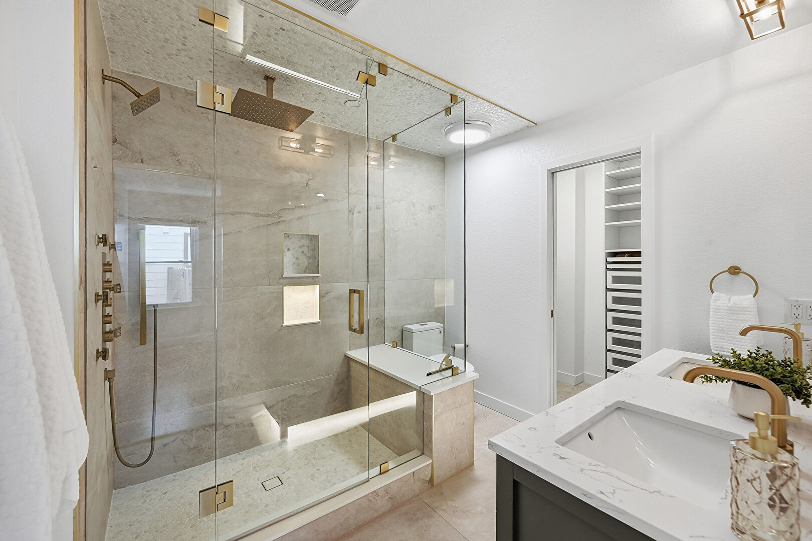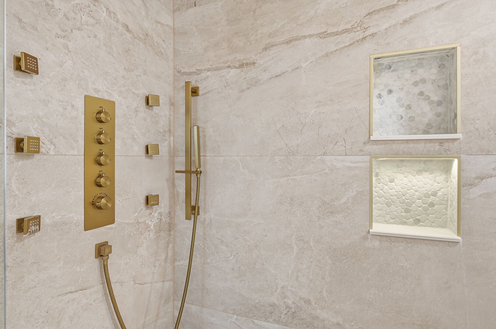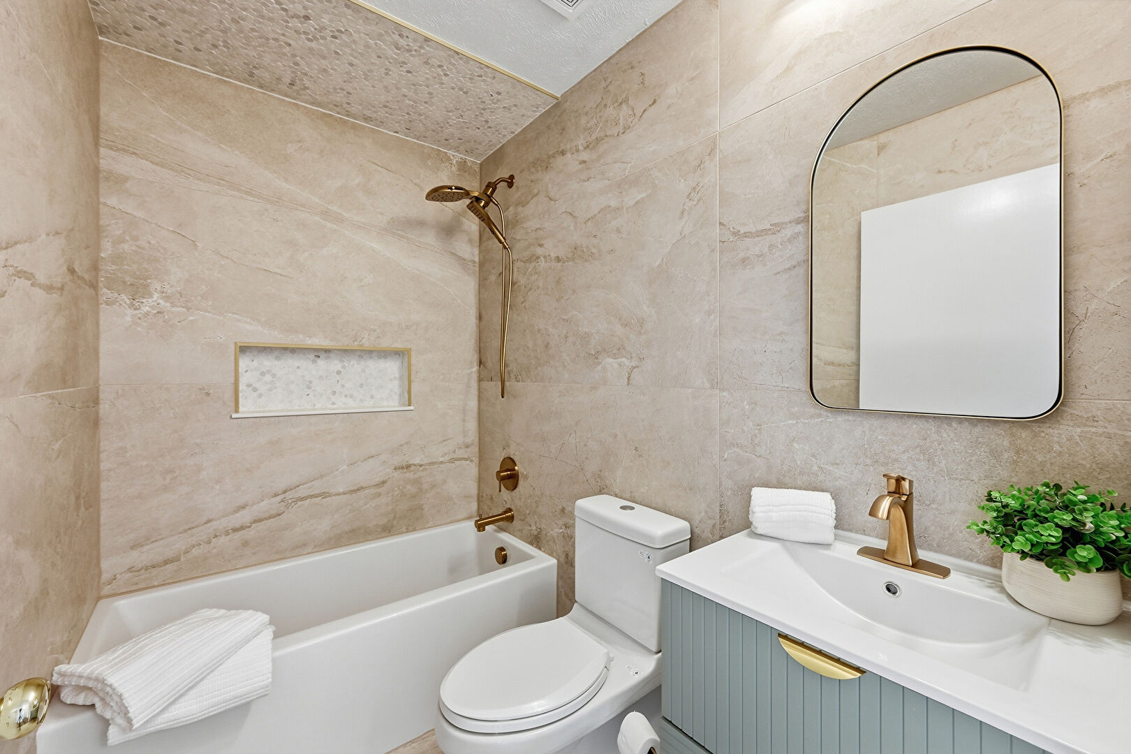 Combined Bath Shower, Full Bathroom, Tile Wall, Vanity