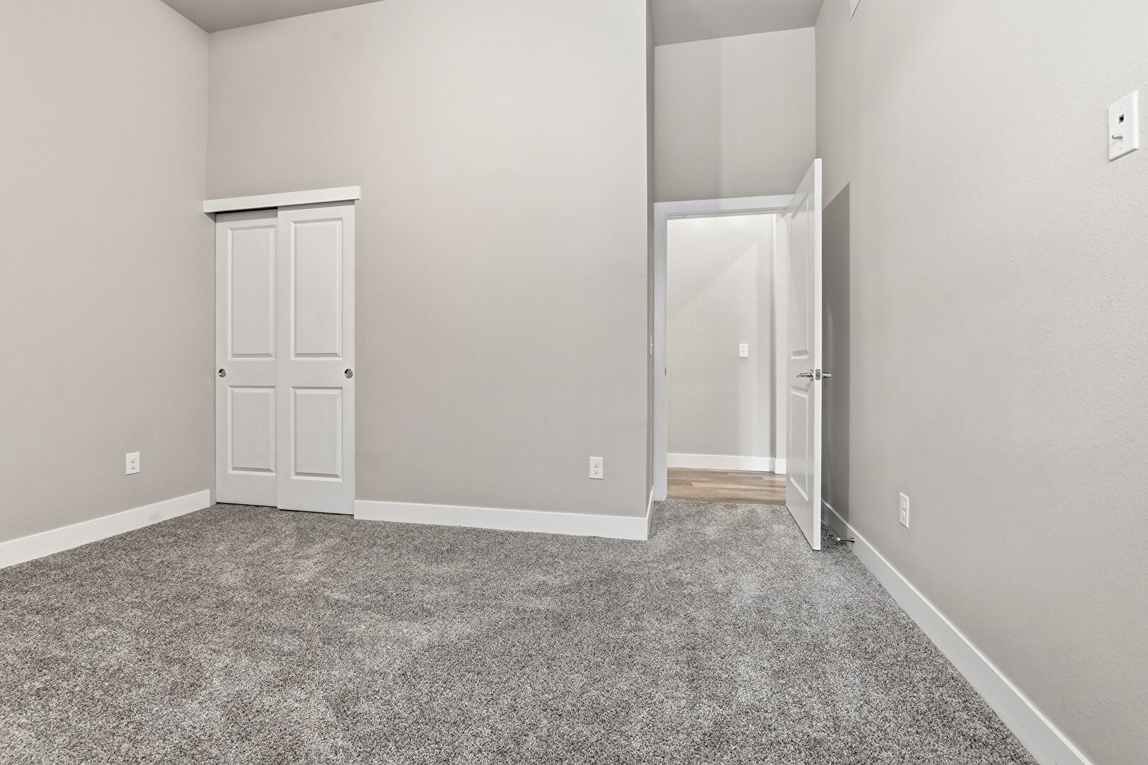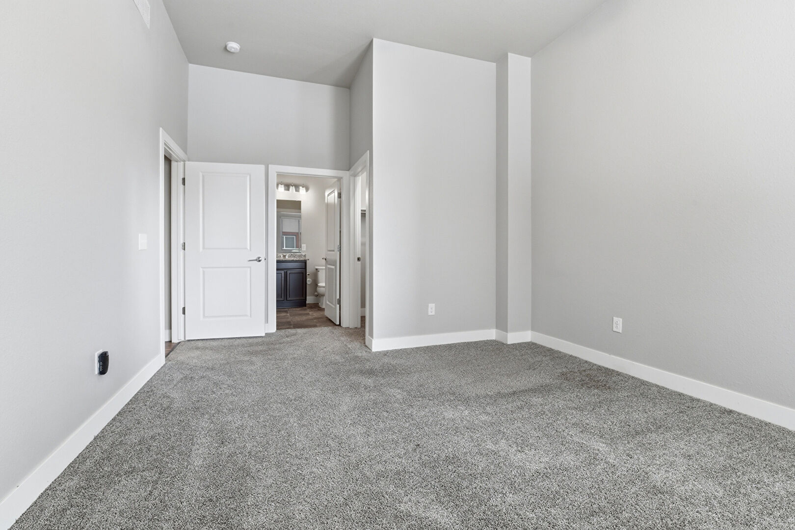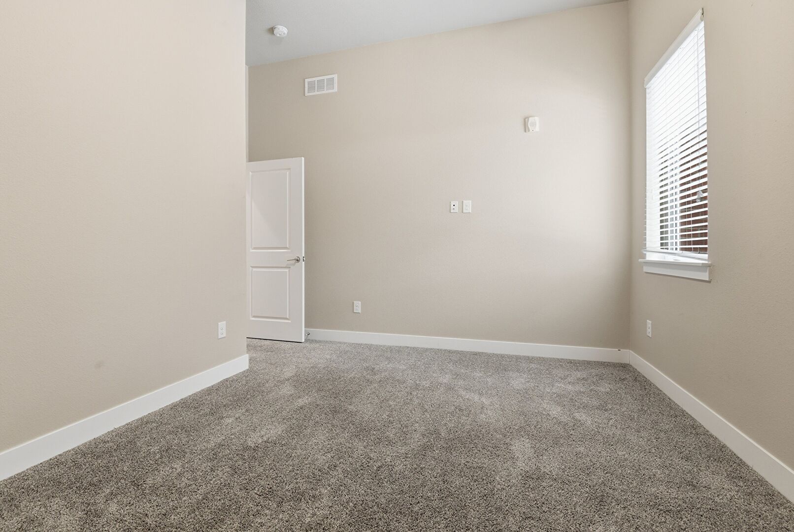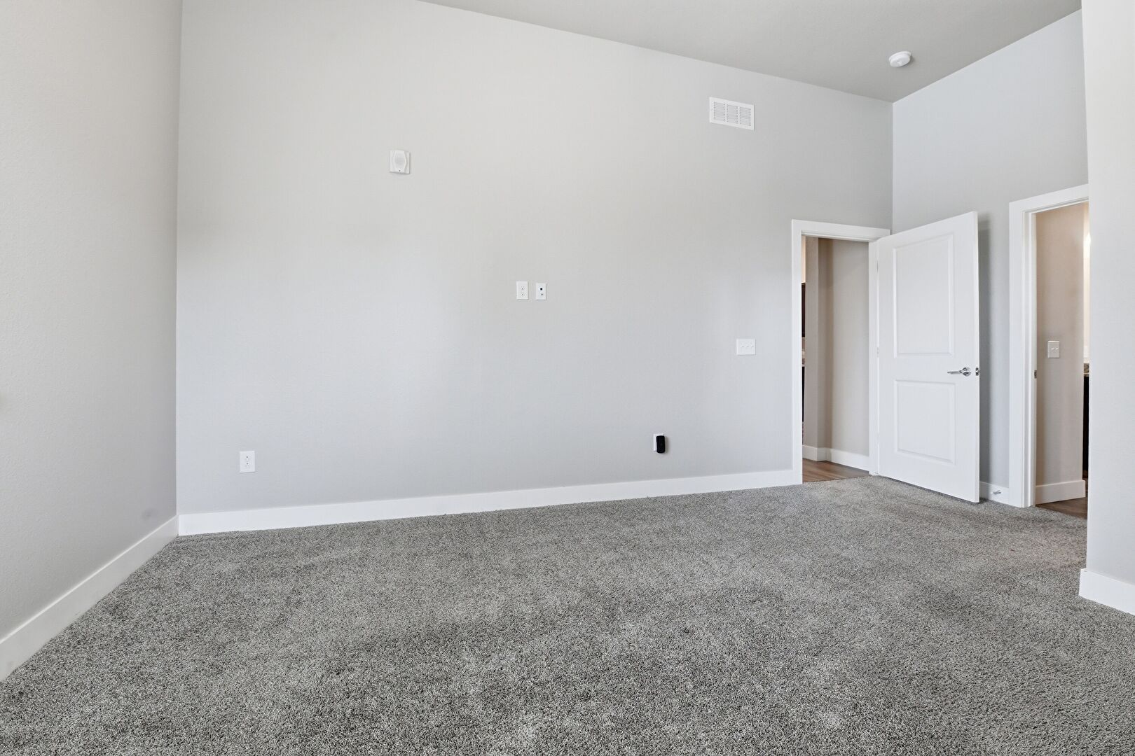 Baseboards Wall, Carpet, Drywall, High Ceiling, Smoke Carbon Monoxide Detector, Vent, Closet, Natural Light