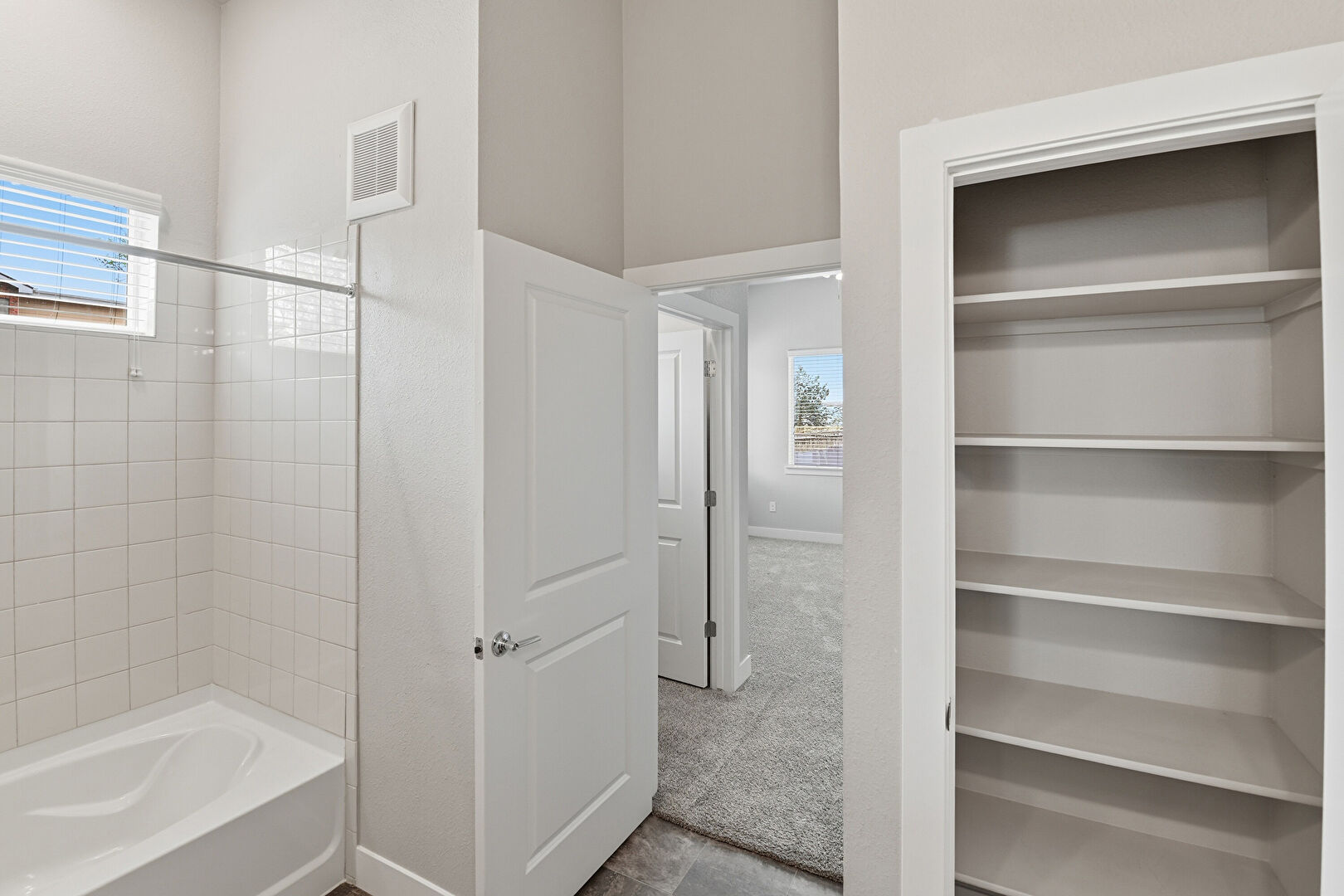 Baseboards Wall, Carpet, Combined Bath Shower, Double Vanity, Drywall, Full Bathroom, Half Bathroom, Natural Light, Stone Finish Floor, Vanity, Vent, Walk In Closet, Carpet, Closet, Drywall