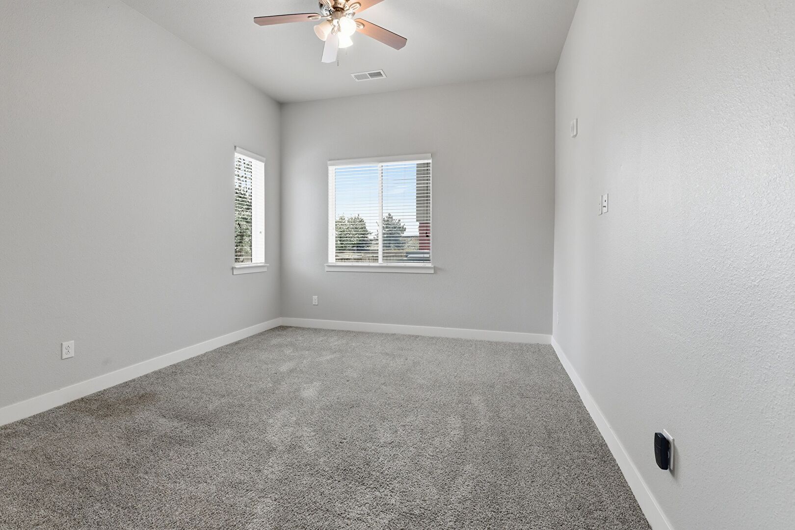 Baseboards Wall, Carpet, Drywall, Ensuite Bathroom, Natural Light, Smoke Carbon Monoxide Detector, Vent, Ceiling Fan, Drywall, High Ceiling