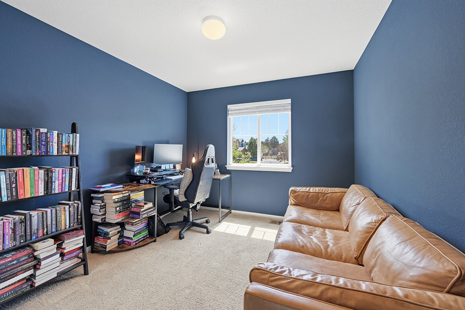 Baseboards Wall, Carpet, Drywall, Natural Light, Office Area, Textured Wall, Carpet, Smoke Carbon Monoxide Detector