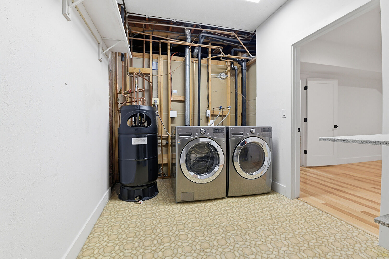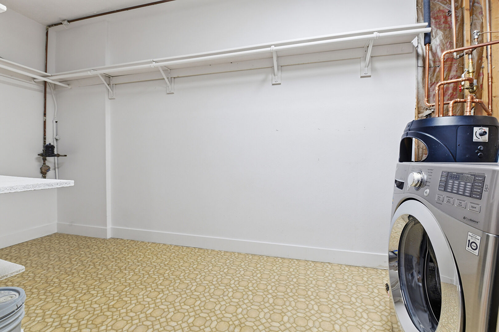Baseboards Wall, Basement, Drywall, Laundry, Vinyl Floor, Washer Dryer, Laundry, Vinyl Floor