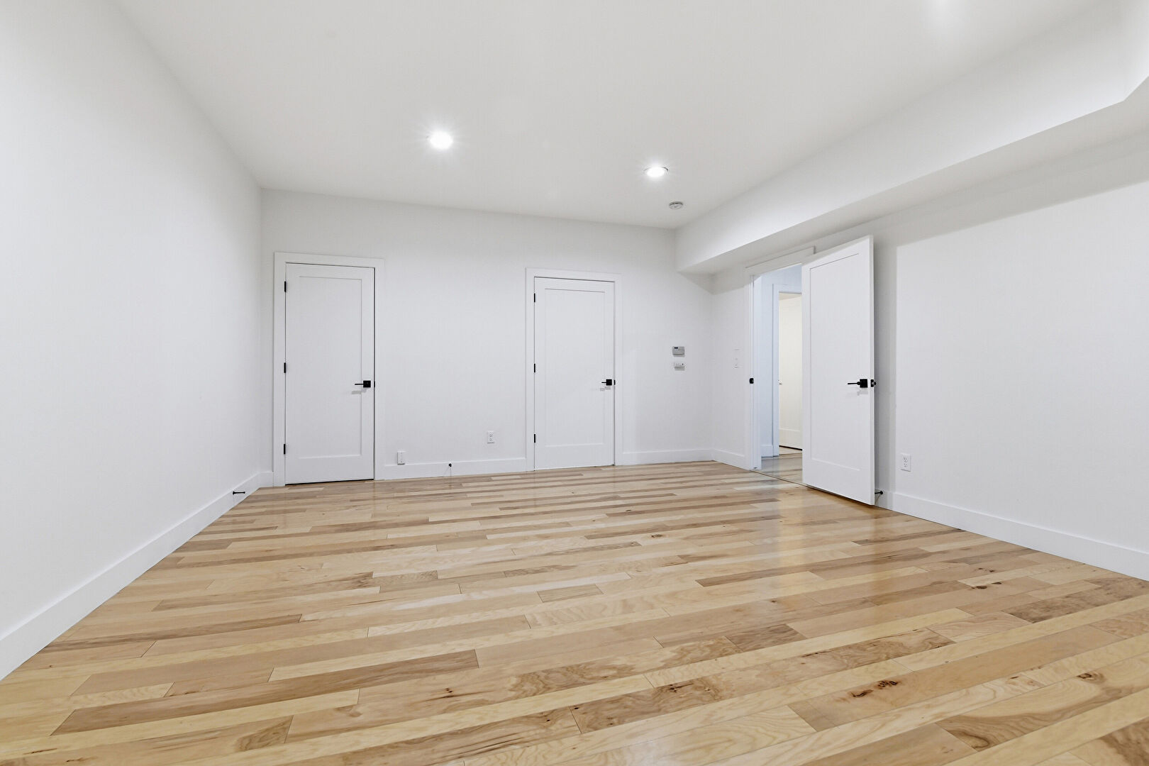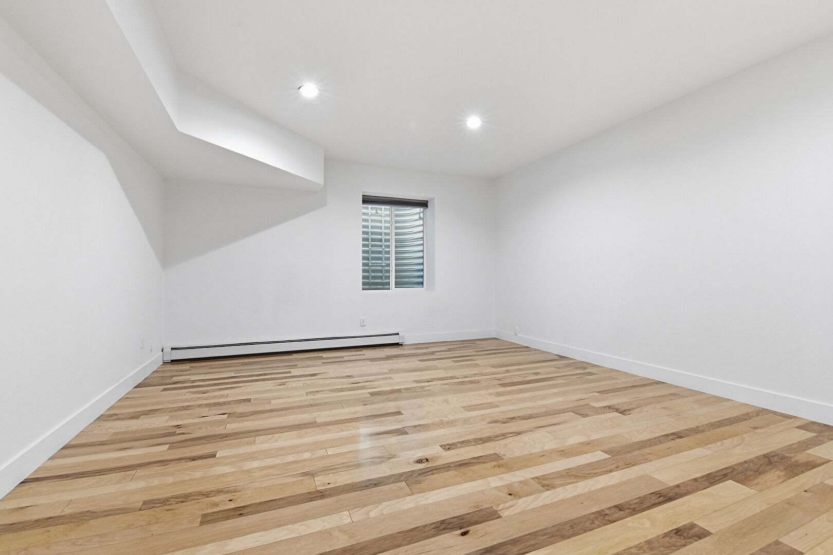 Baseboard Radiator, Baseboards Wall, Basement, Natural Light, Recessed Lighting, Wood Finish Floor, Drywall