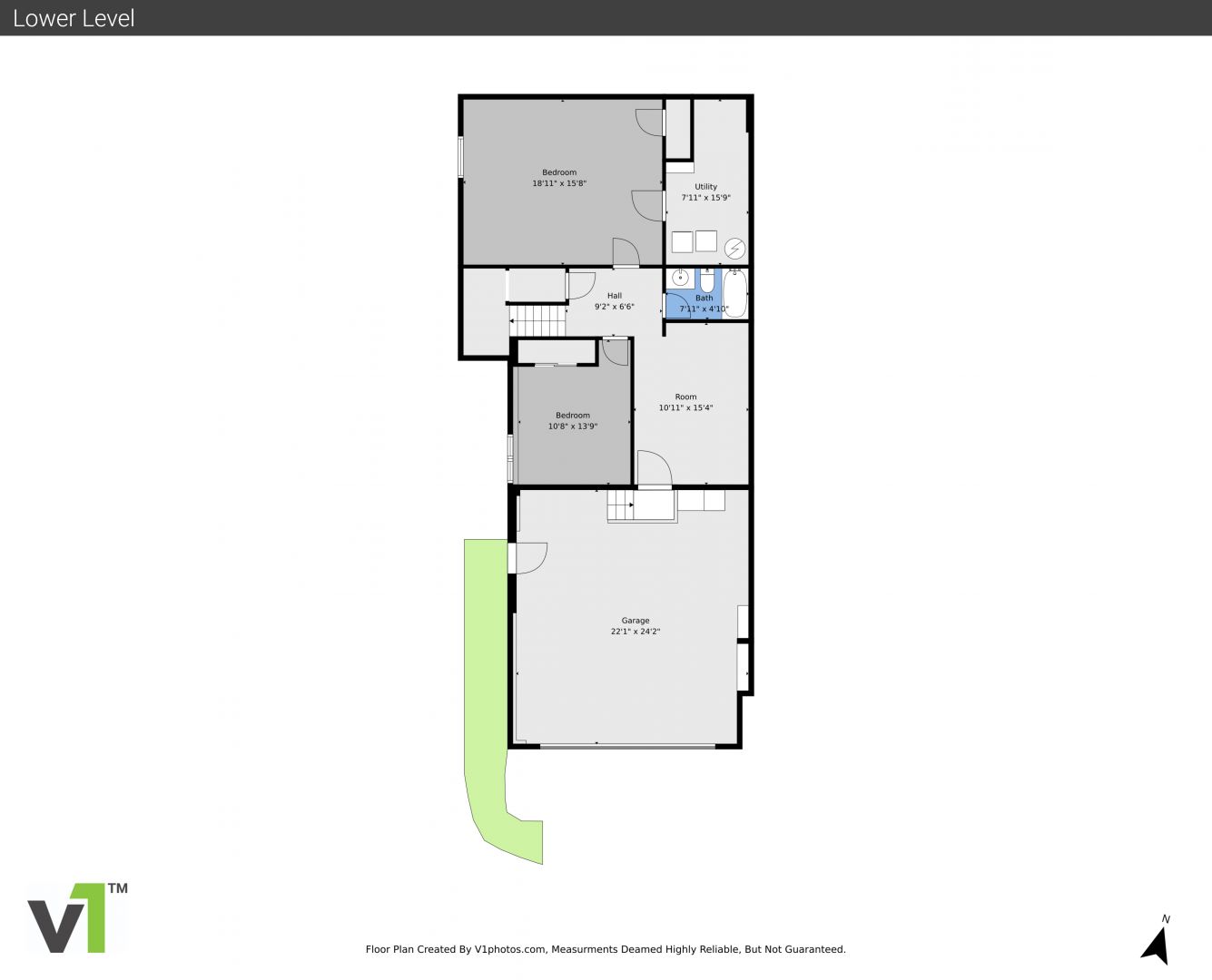 Chimney, Concrete Foundation, Driveway, Garage, Gas Meter, Lawn, Shingle Roof, Stairs, Vertical Siding, Driveway, Vertical Siding, Wood Siding