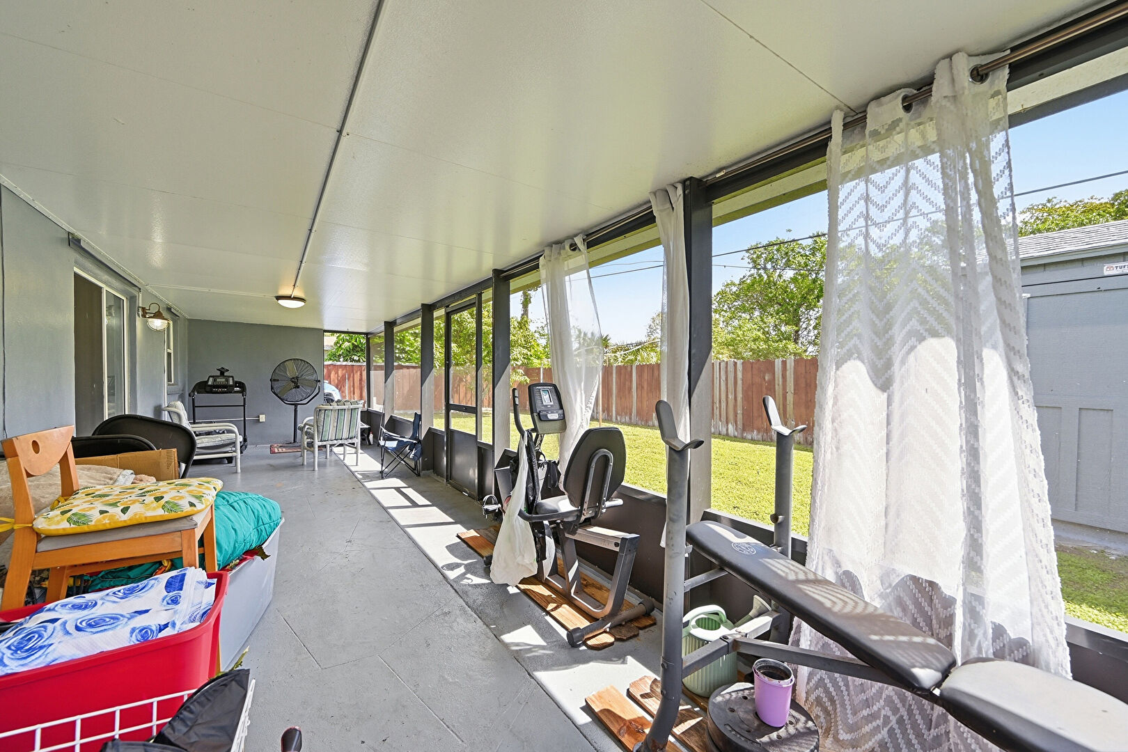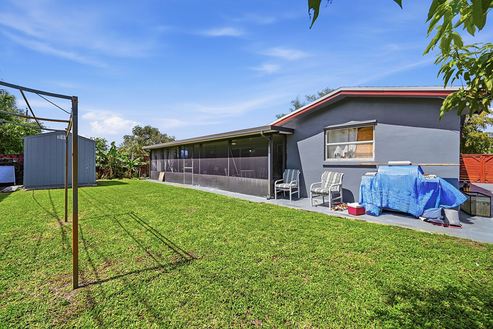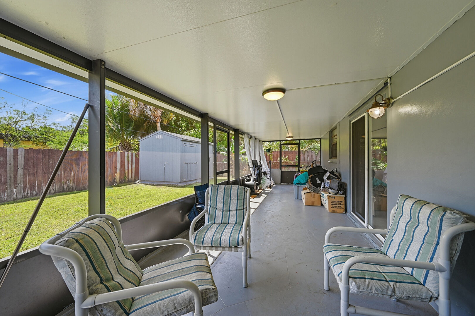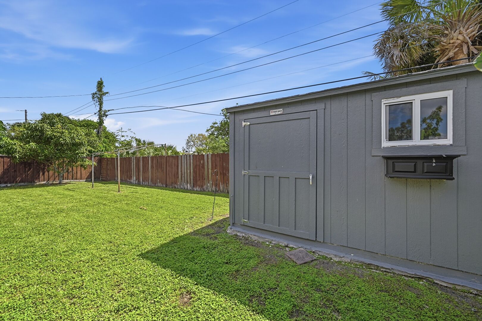 Downspout, Fence, Gutters, Lawn, Outdoor Structure, Shed, Sunroom, Stucco Siding