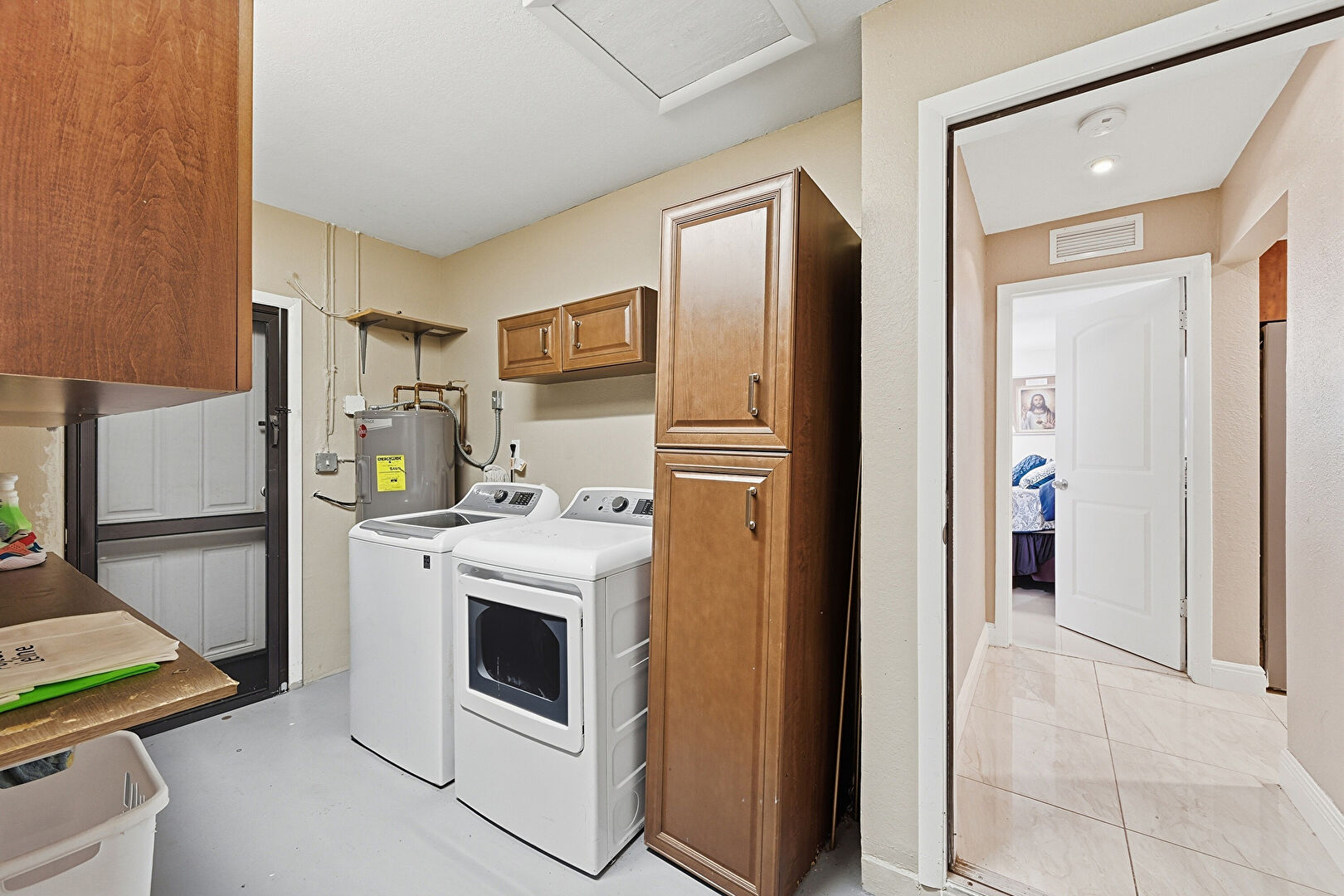 Concrete Floor, Drywall, Laundry, Scuttle, Smoke Carbon Monoxide Detector, Vent, Water Heater, Baseboards Wall