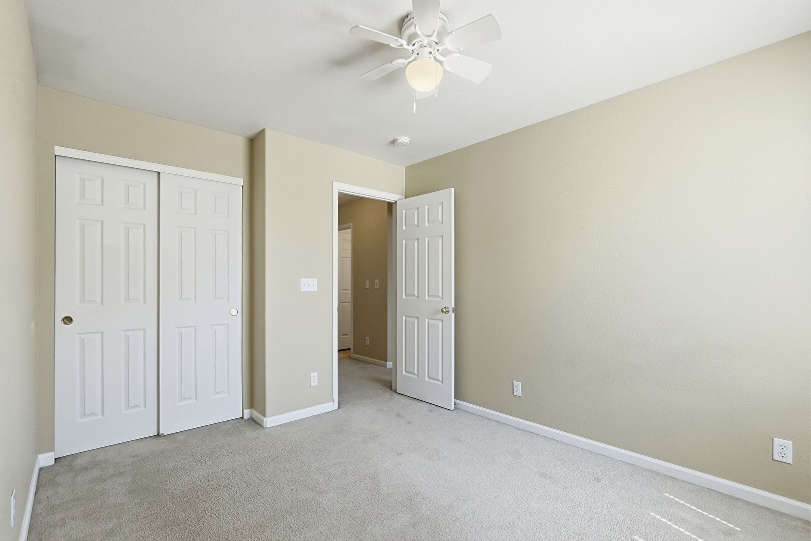Baseboards Wall, Carpet, Ceiling Fan, Closet, Drywall, Natural Light, Smoke Carbon Monoxide Detector, Vent, Baseboards Wall, Drywall