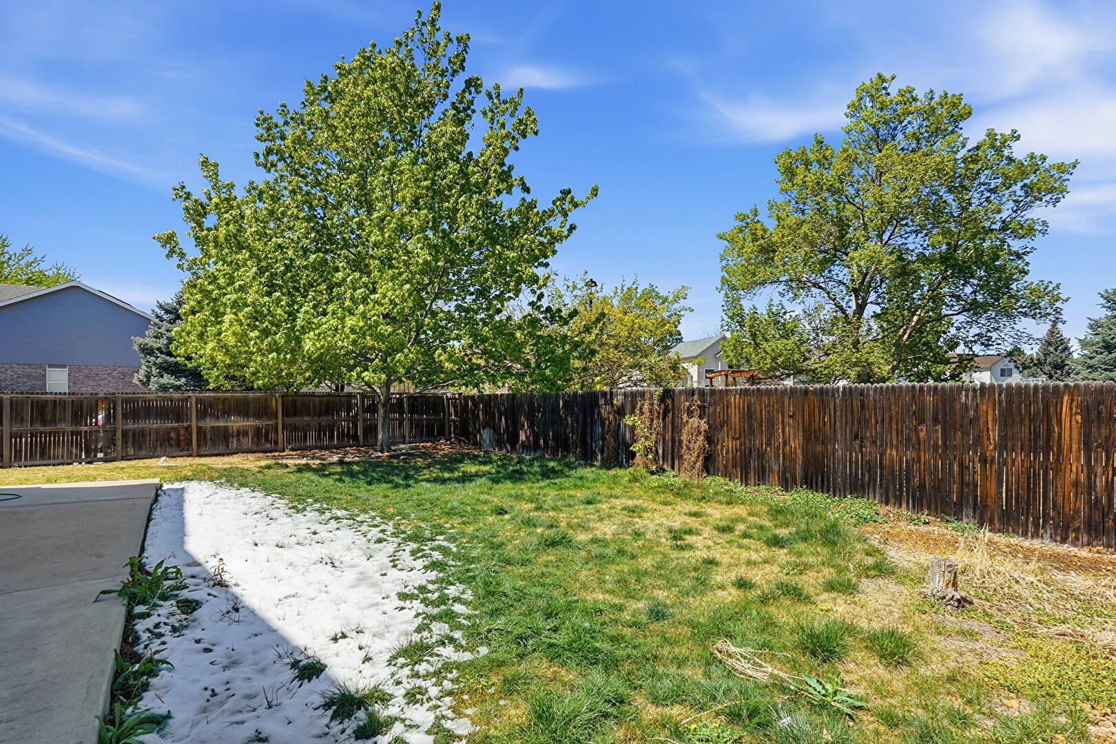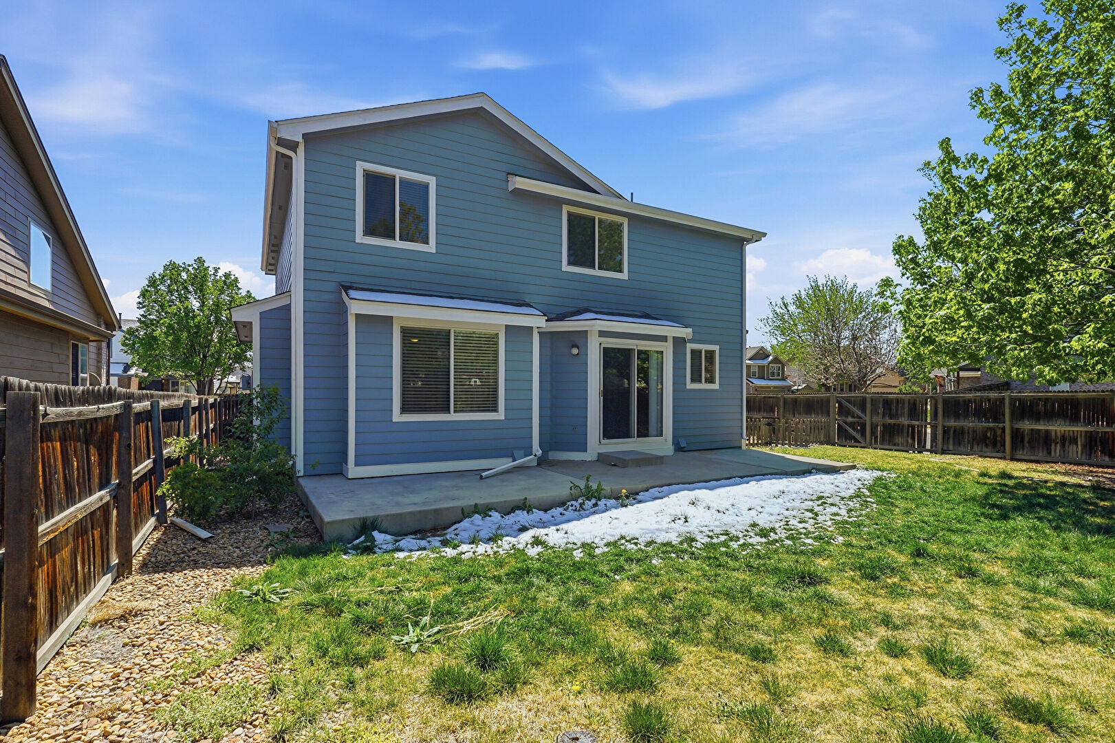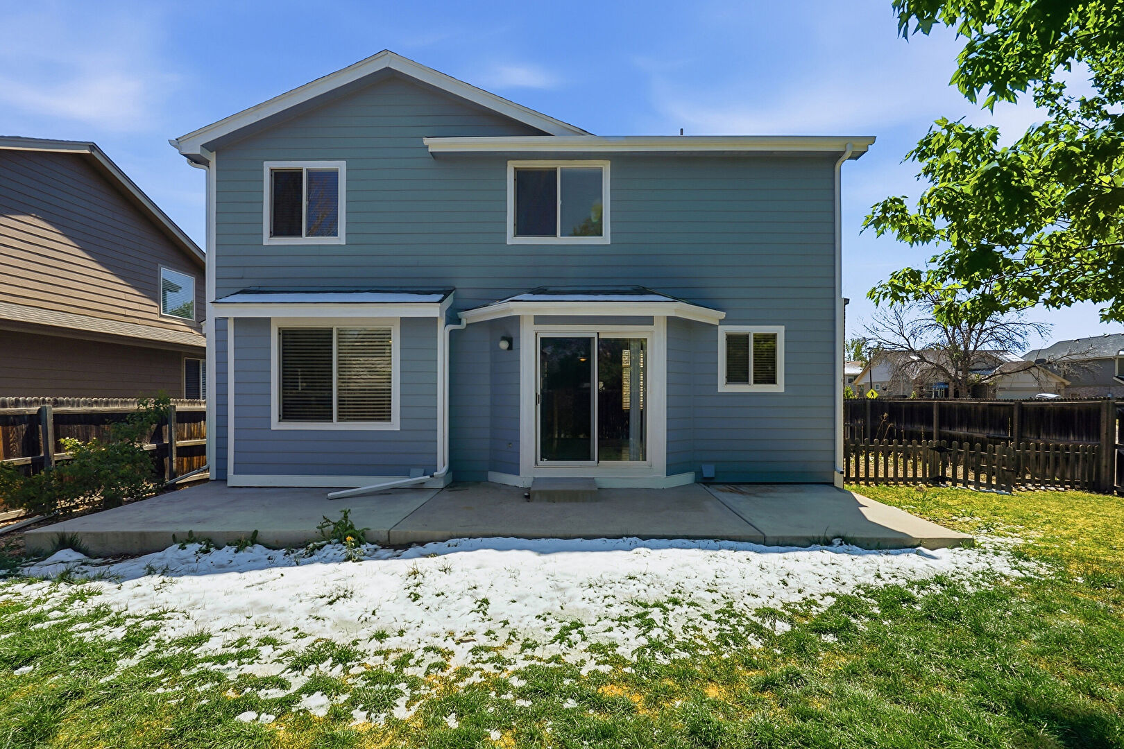 Downspout, Fence, Gutters, Horizontal Siding, Lawn, Patio, Lawn, Patio