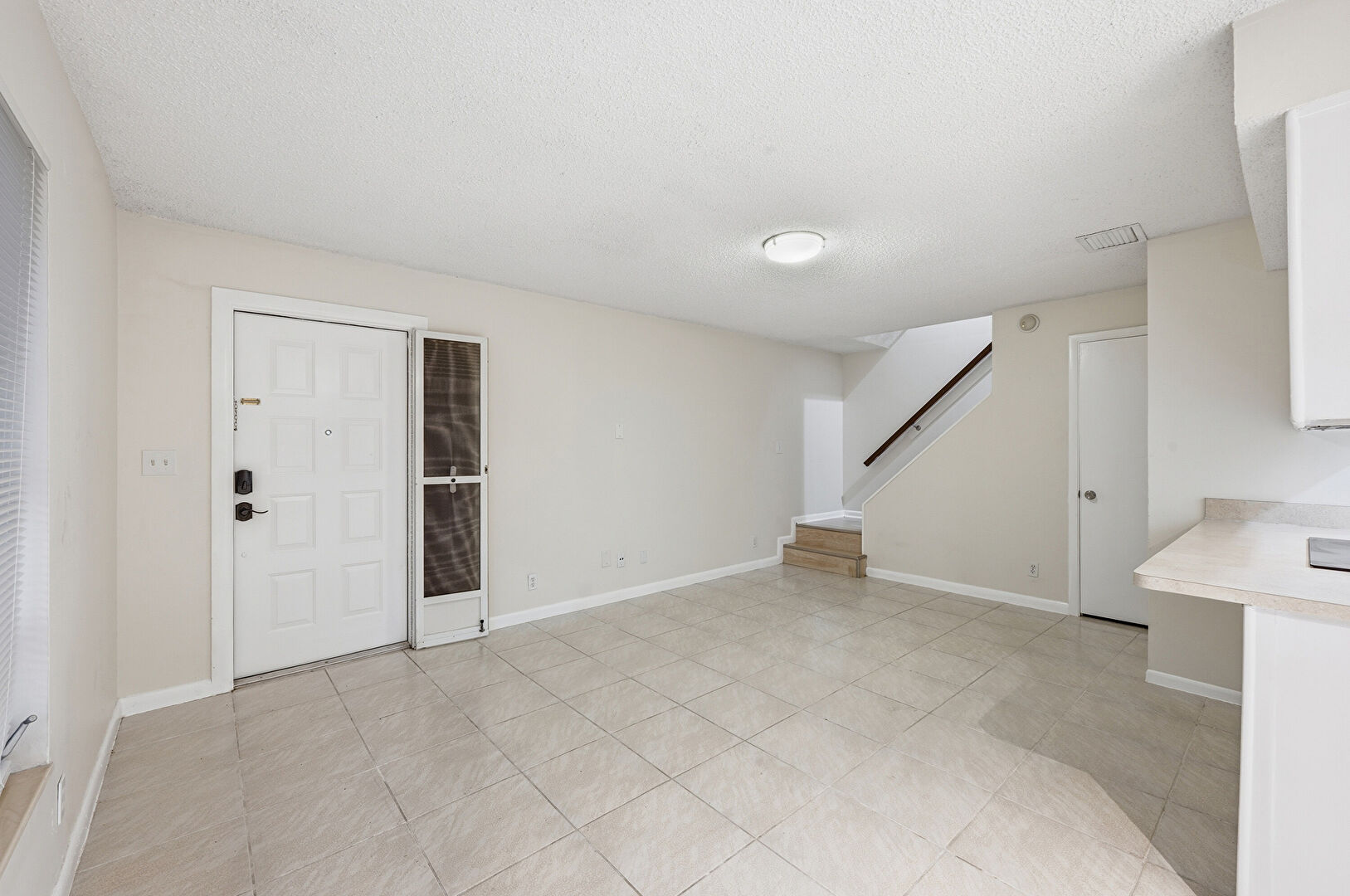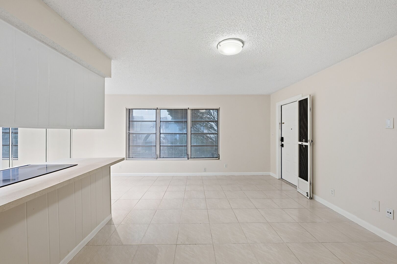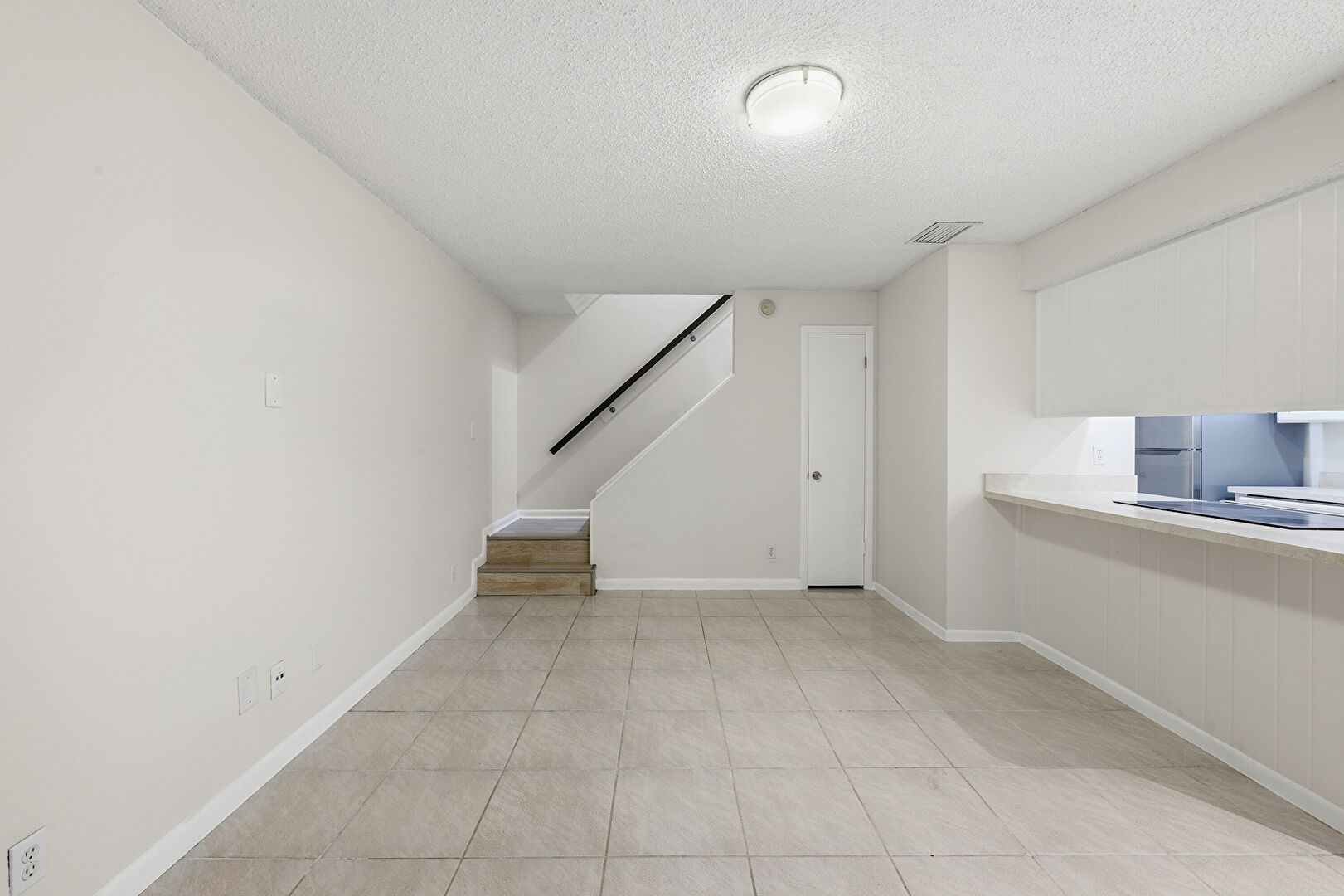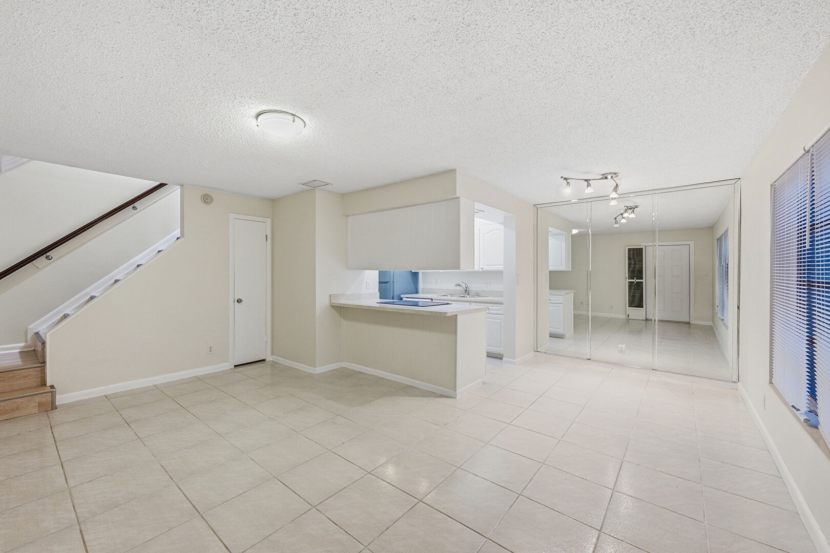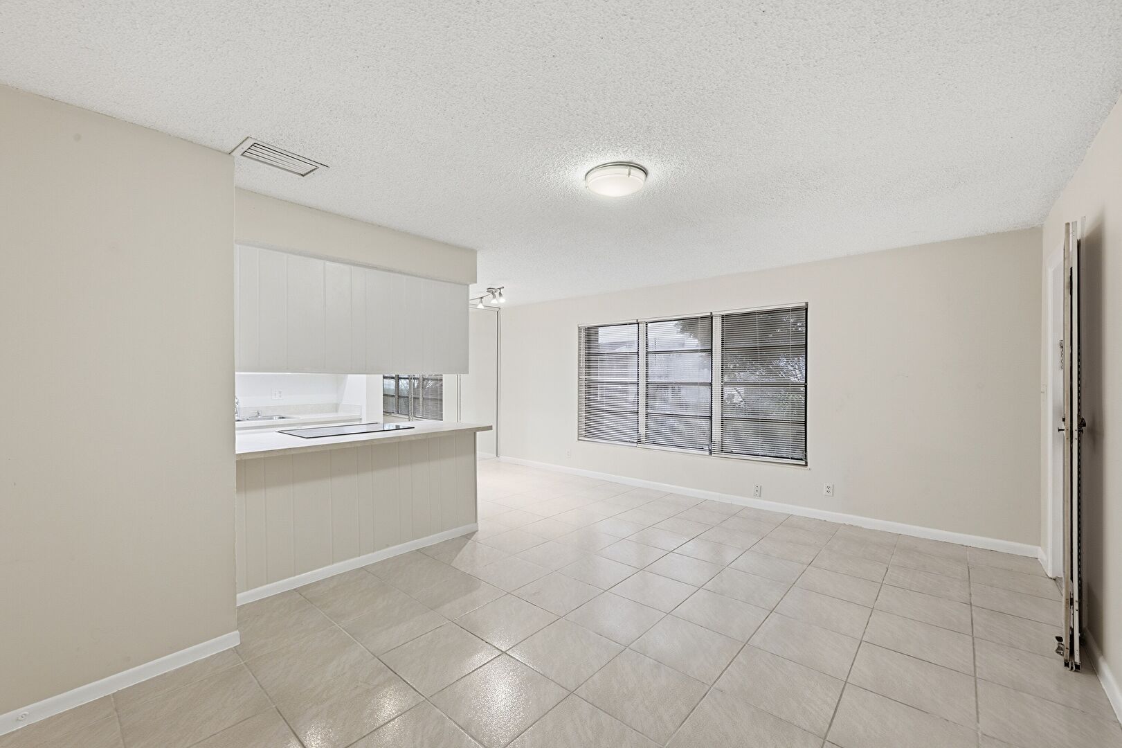 Baseboards Wall, Closet, Drywall, Kitchen Peninsula, Natural Light, Opens To Living Area, Textured Ceiling, Tile Floor, Track Lighting, Vent, Baseboards Wall, Drywall, Textured Ceiling