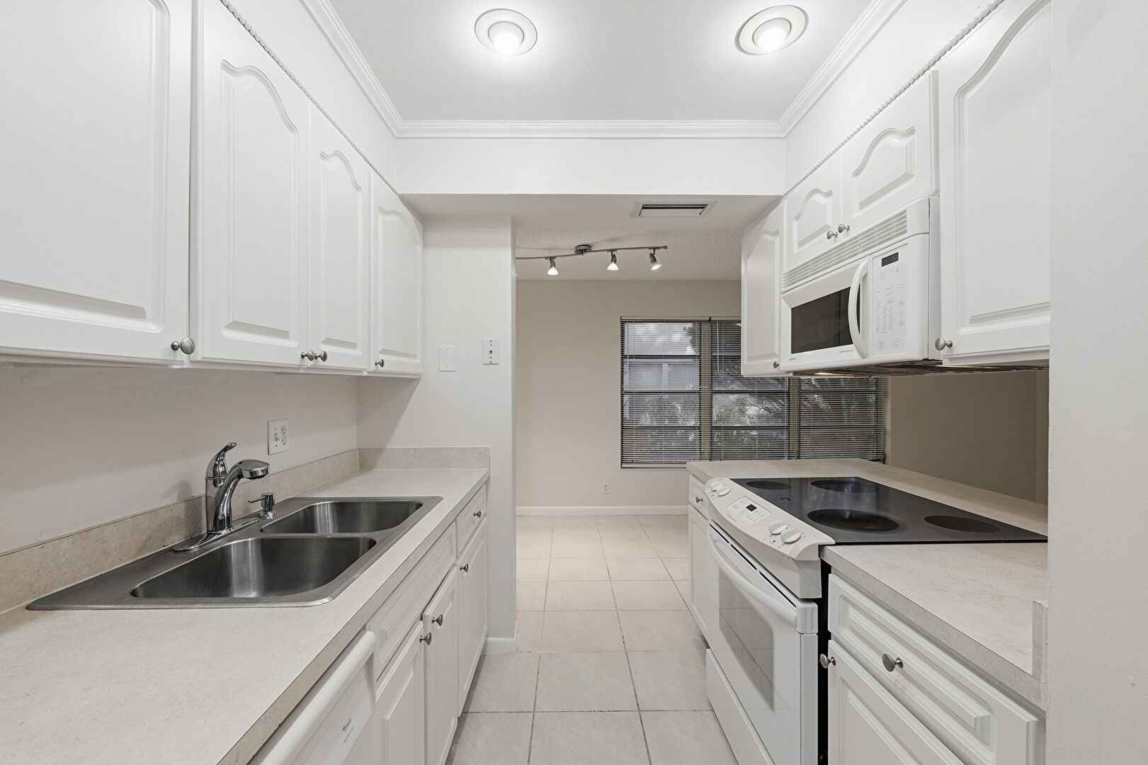 Arched Cabinets, Baseboards Wall, Crown Molding, Drywall, Galley Kitchen, Kitchen Bar, Kitchen Peninsula, Laundry, Pendant Lighting, Raised Cabinets, Recessed Lighting, Textured Ceiling, Tile Floor, Track Lighting, Vent, Washer Dryer, Crown Molding, Raised Cabinets, Tile Floor, Vent
