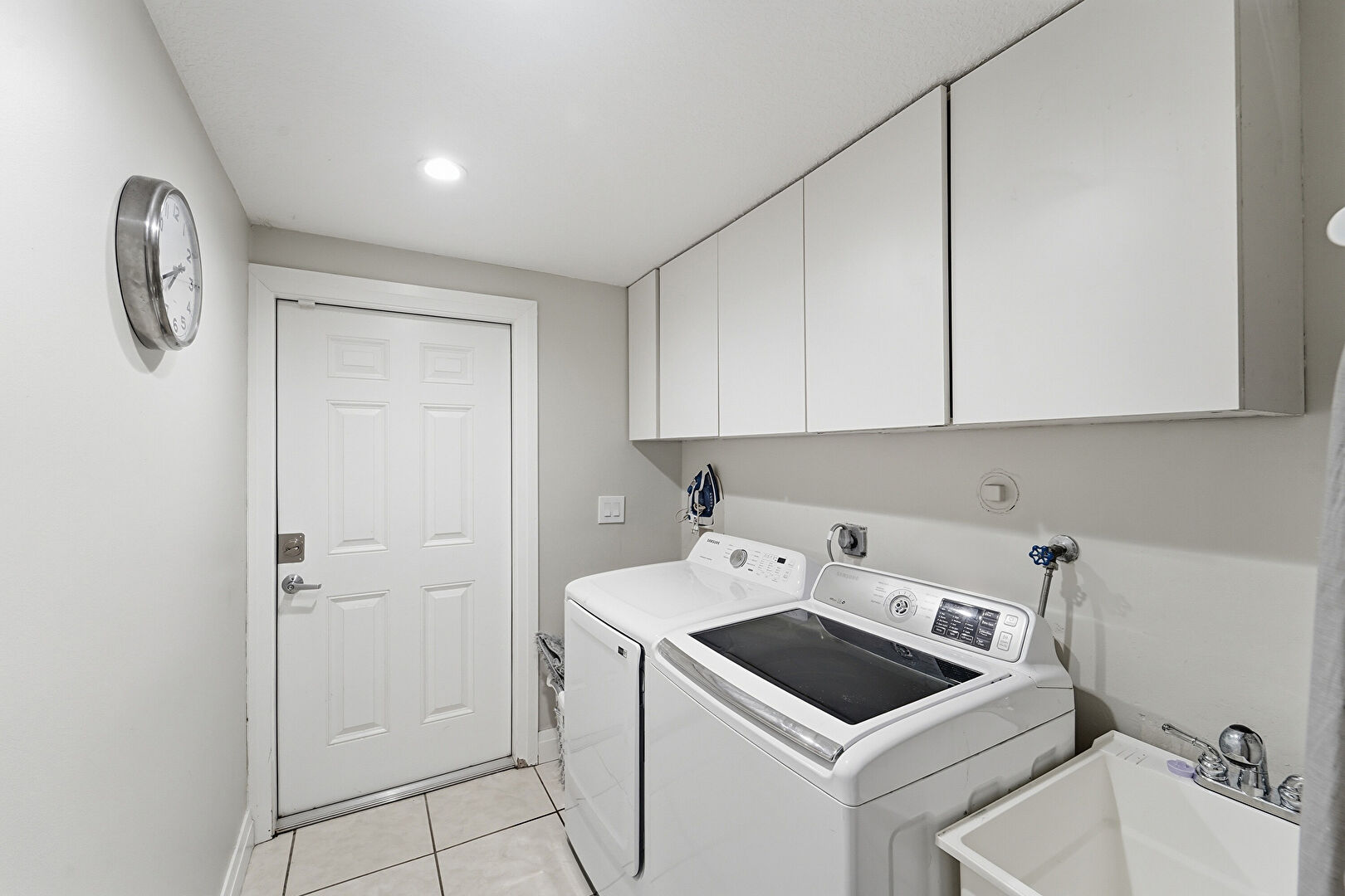 Baseboards Wall, Drywall, Electric Dryer Hookup, Laundry, Tile Floor, Washer Hookup, Recessed Lighting