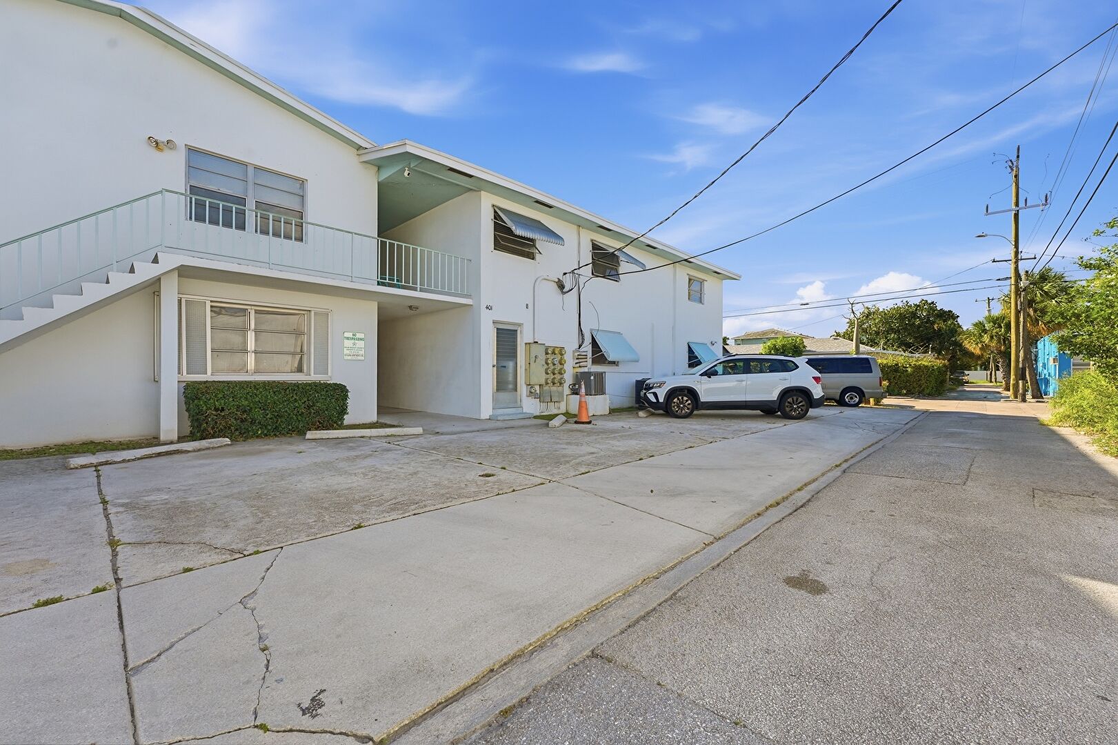 Balcony, Fence, Gate, Parking Pad, Stairs, Stucco Siding, Parking Lot