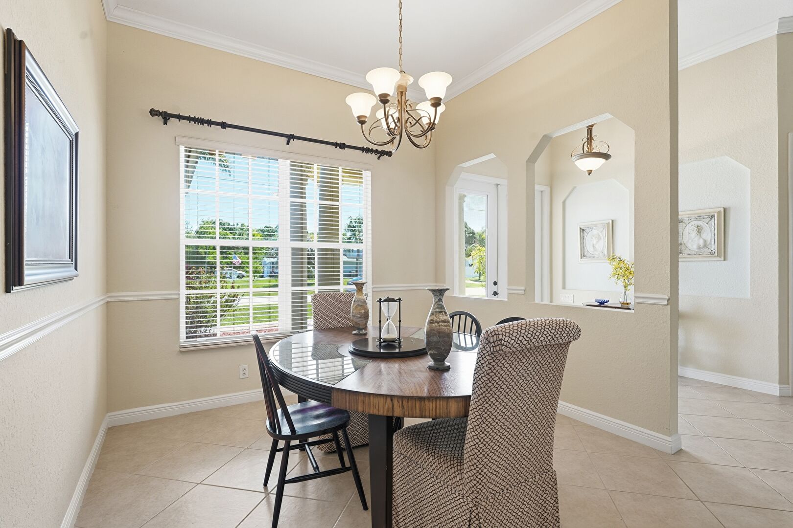 Arched Walkways, Baseboards Wall, Ceiling Fan, Crown Molding, Drywall, Natural Light, Notable Chandelier, Tray Ceiling, Vent, Wood Finish Floor, Drywall, Wood Finish Floor