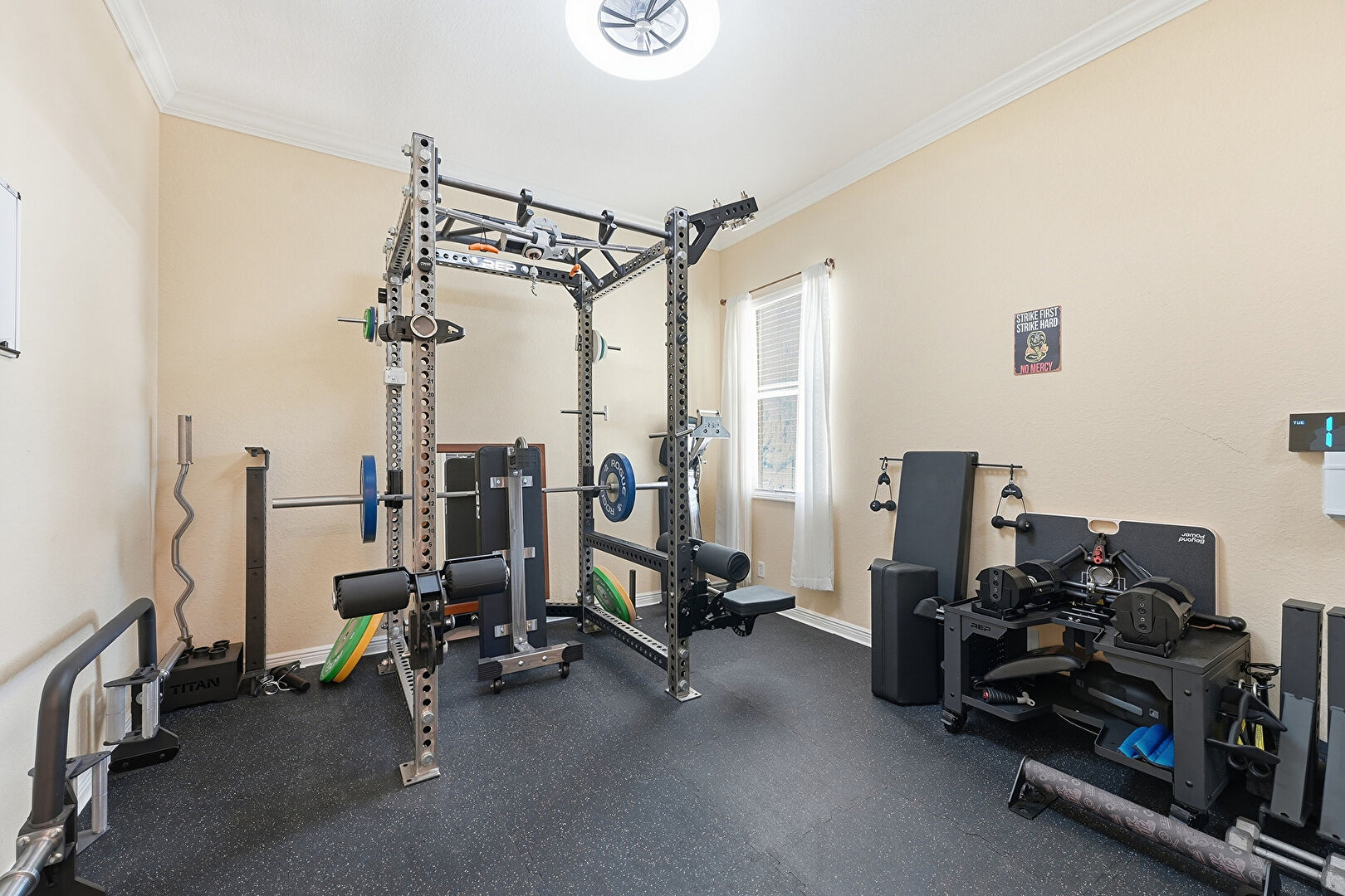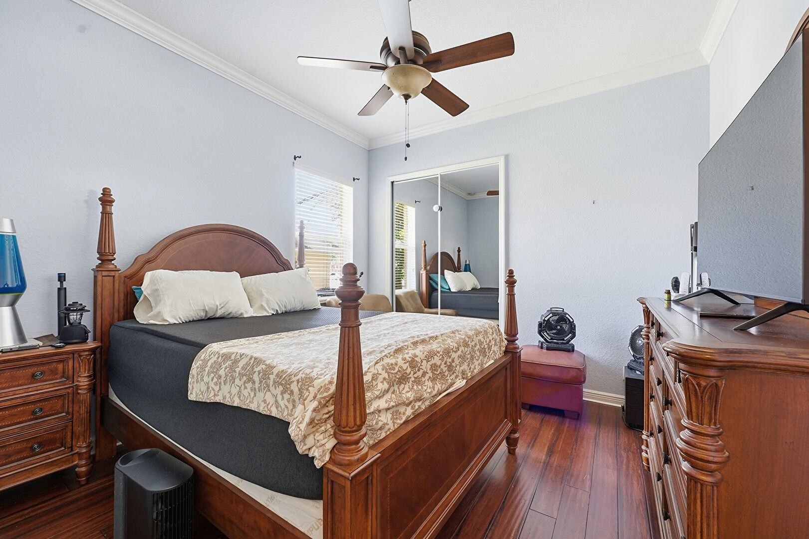 Baseboards Wall, Ceiling Fan, Crown Molding, Drywall, Natural Light, Rubber Floor, Wood Finish Floor, Baseboards Wall, Closet