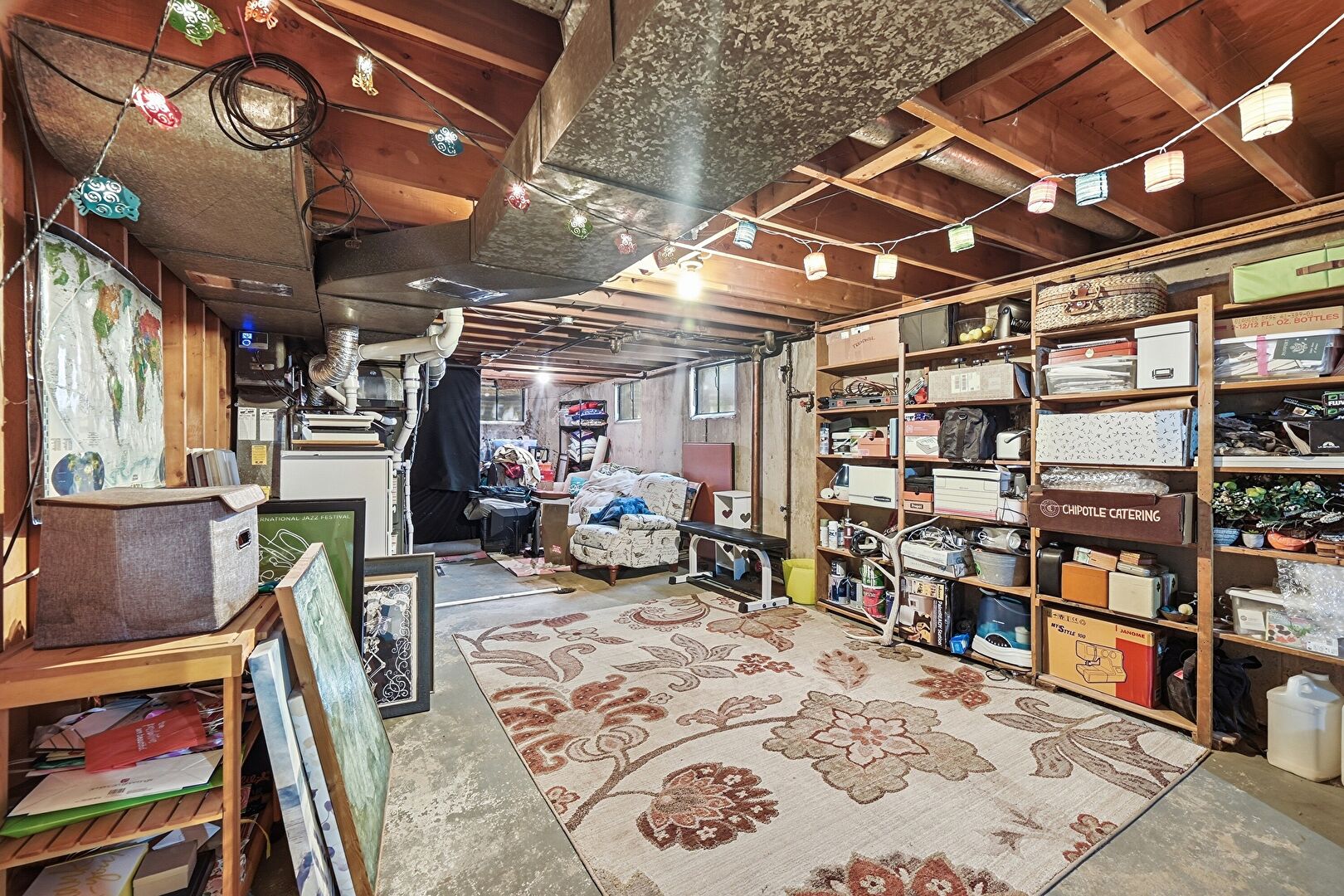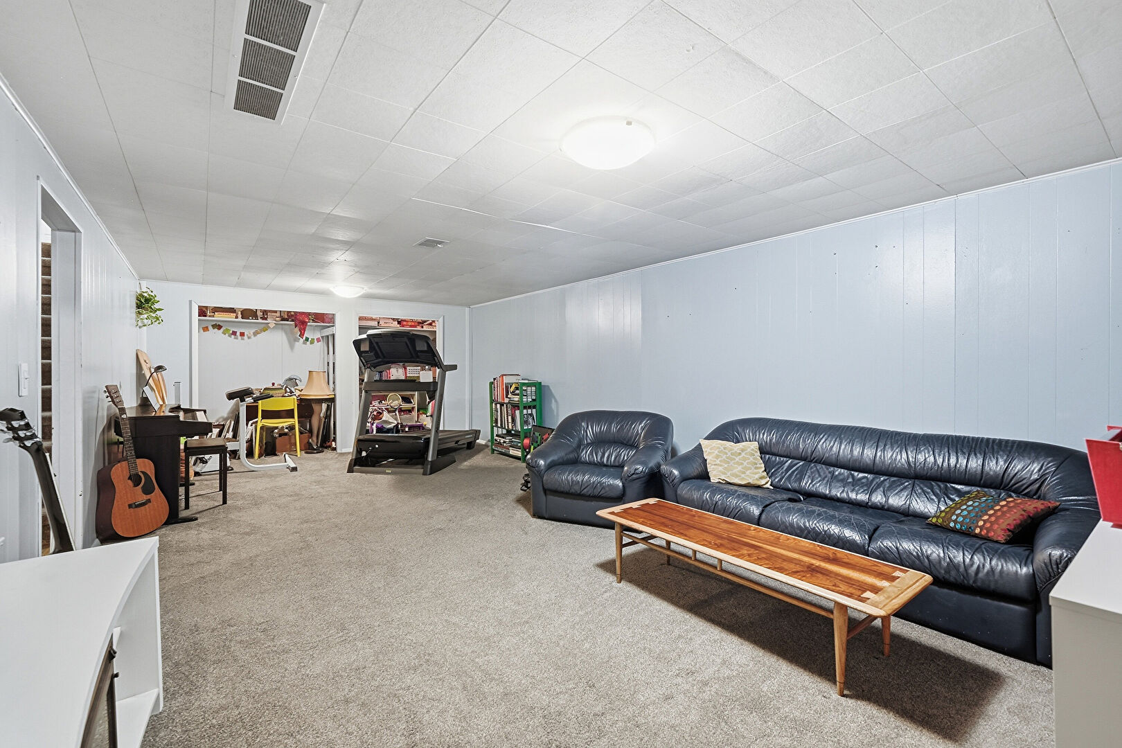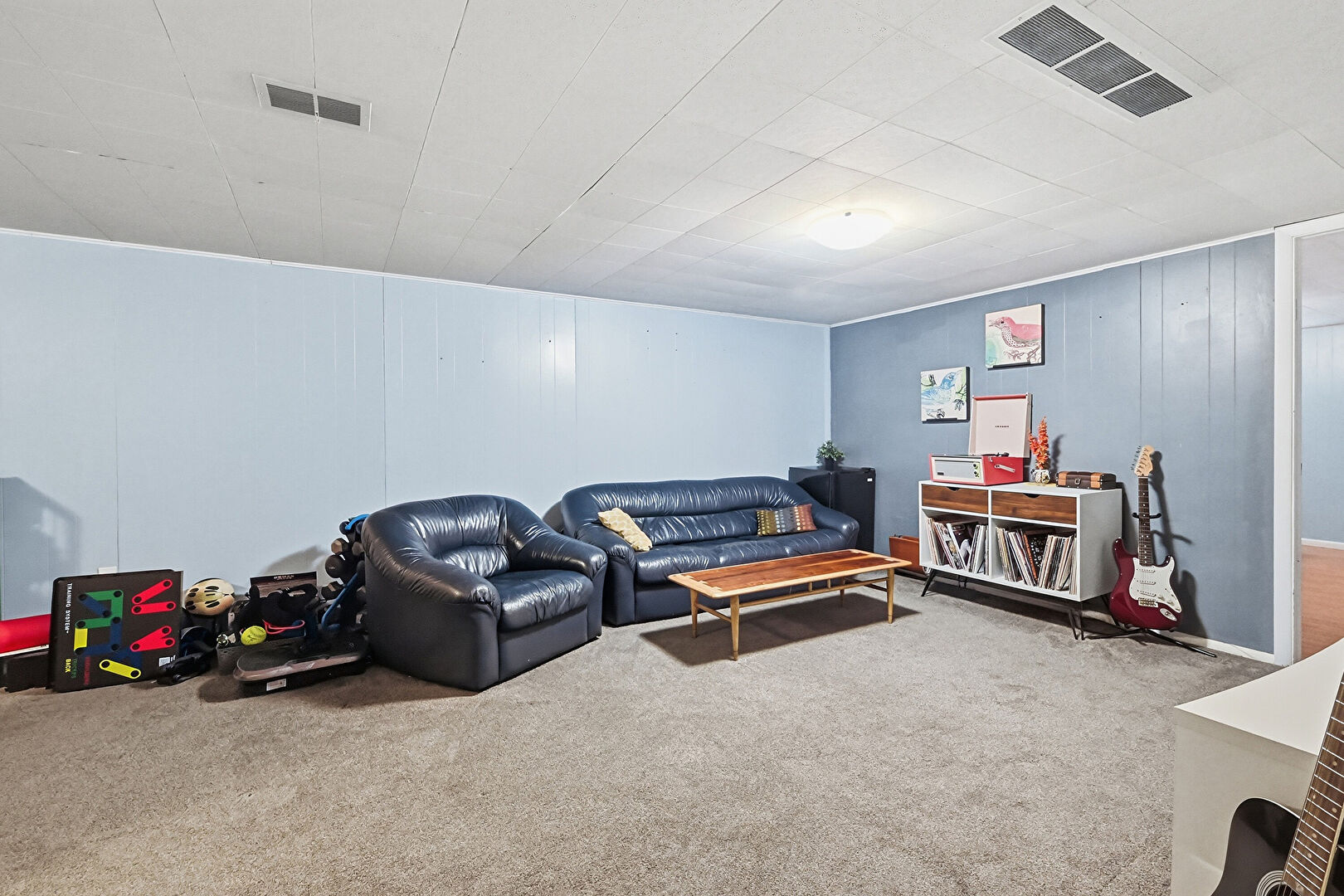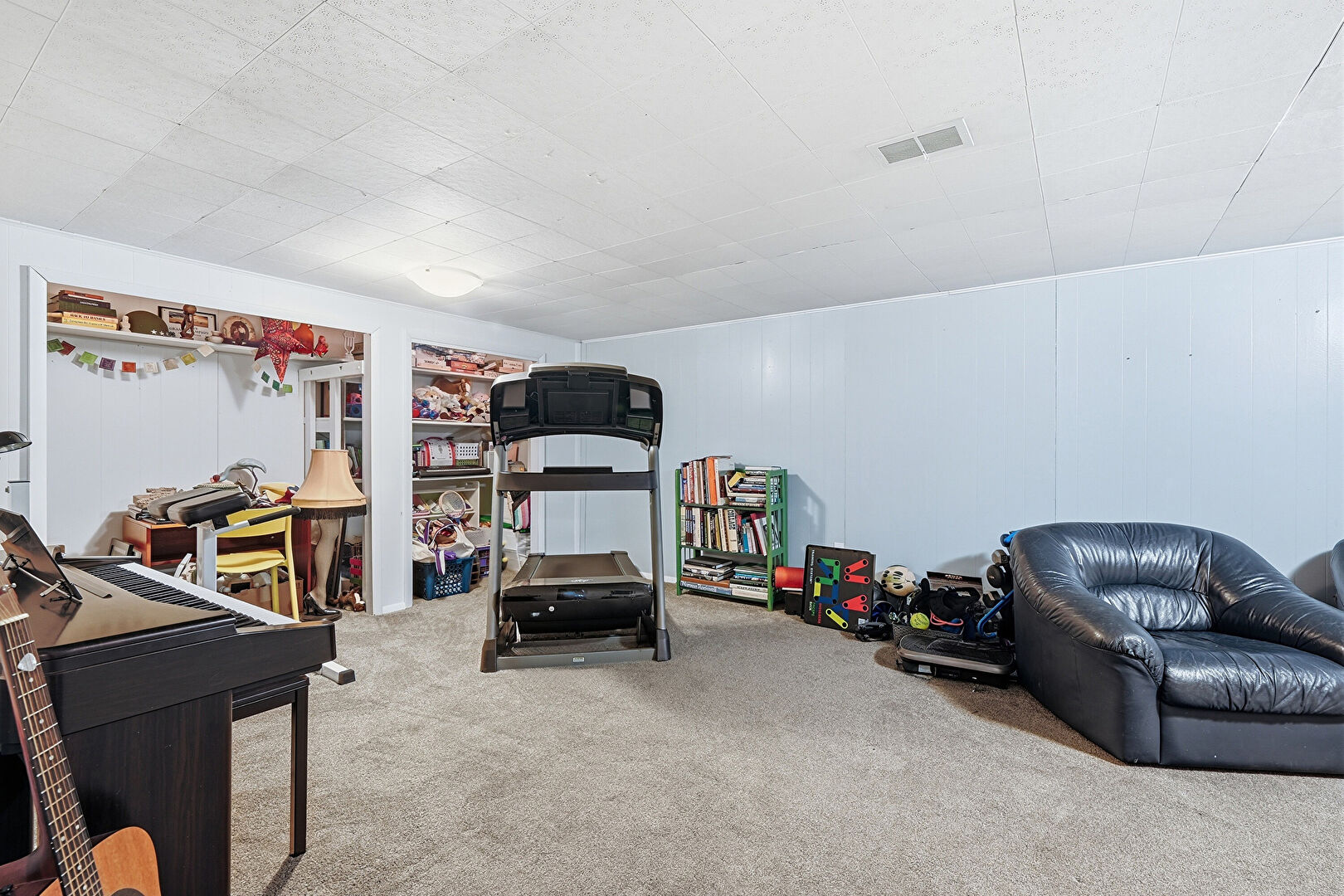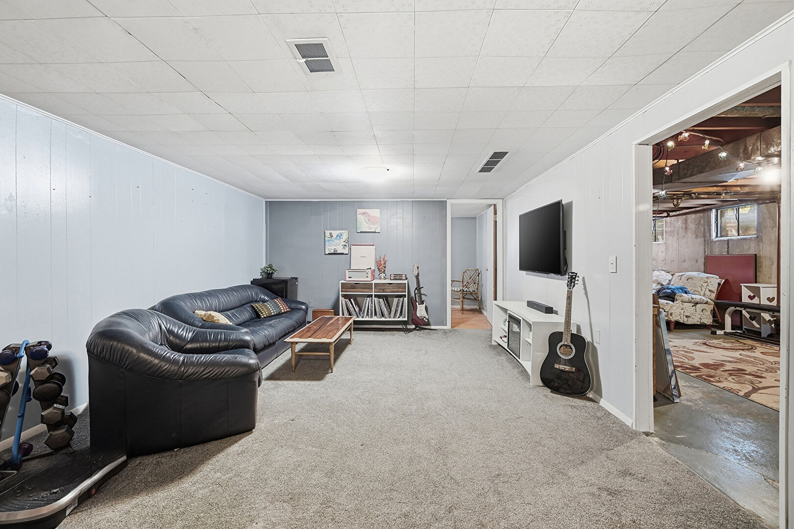Basement, Carpet, Concrete Floor, Natural Light, Vent, Wood Wall, Carpet, Vent, Wood Wall