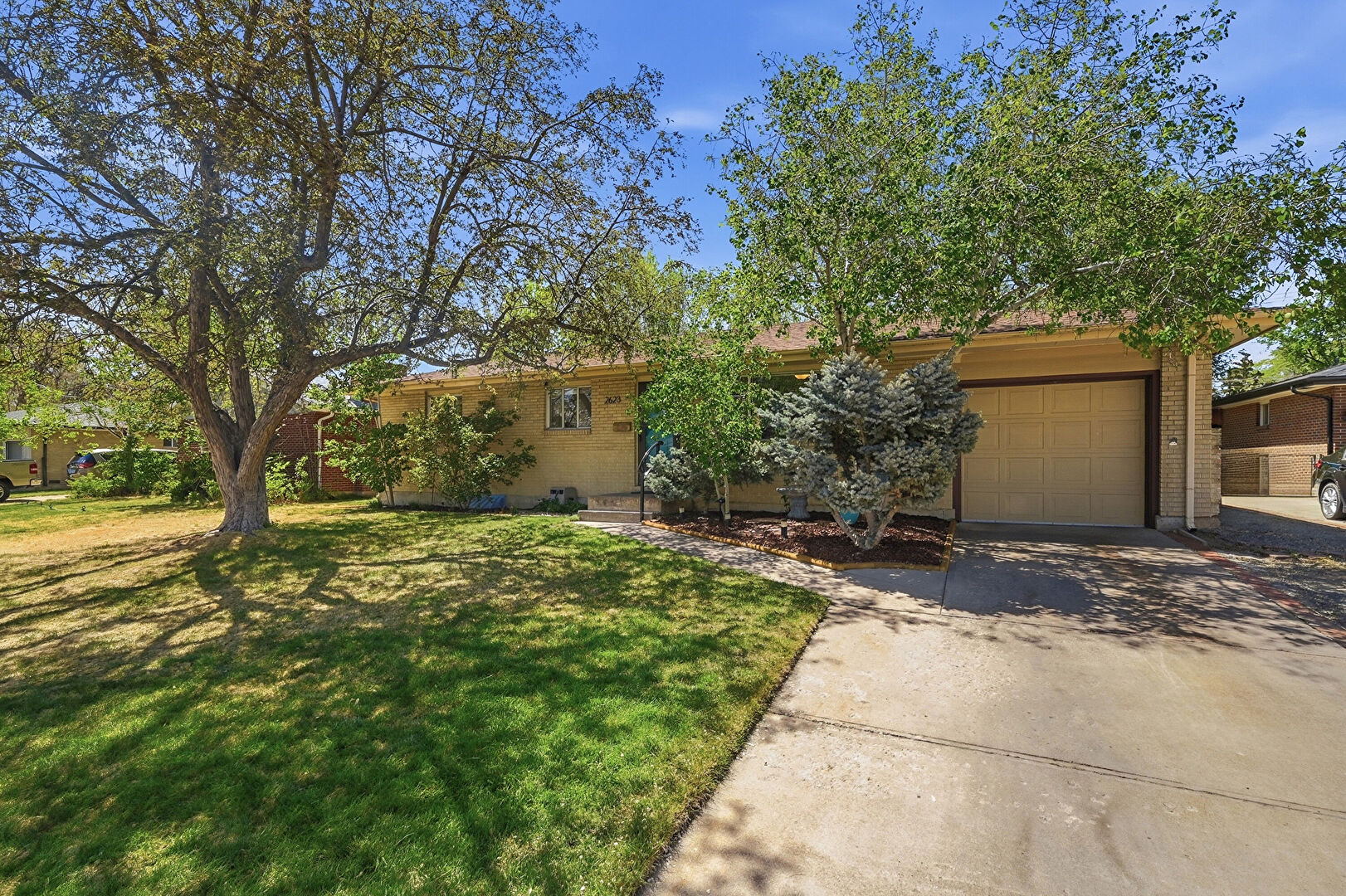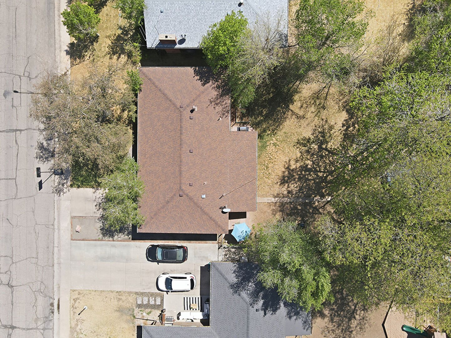 Brick Siding, Concrete Foundation, Downspout, Driveway, Lawn, Stoop, Concrete Foundation, Entry Steps, Lawn, Woods View