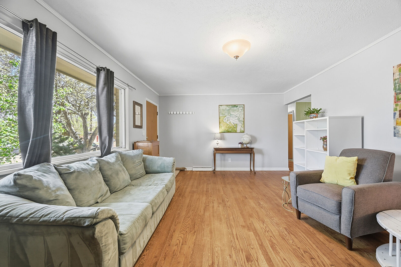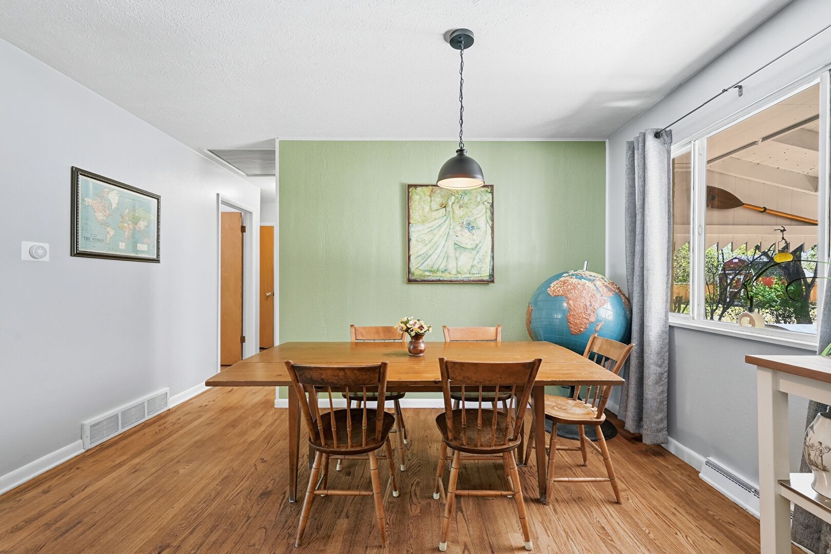 Accent Wall, Baseboard Radiator, Baseboards Wall, Drywall, Natural Light, Textured Ceiling, Vent, Wood Finish Floor, Natural Light, Wood Finish Floor