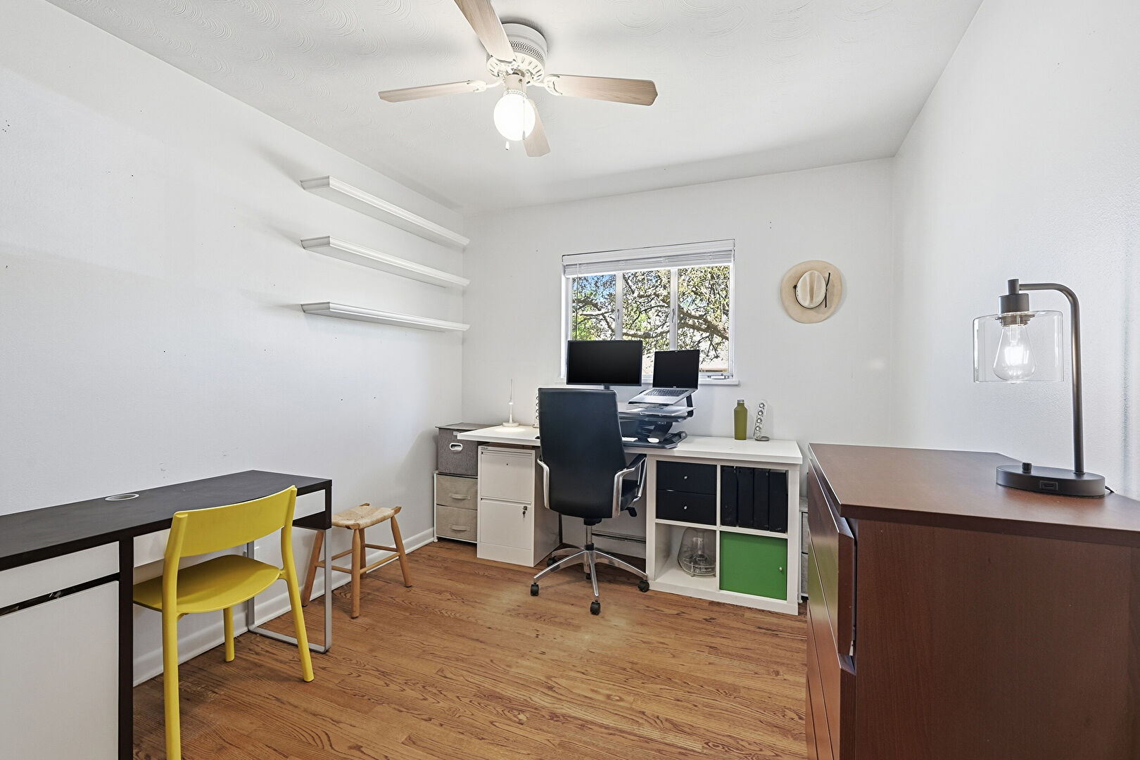 Baseboard Radiator, Baseboards Wall, Ceiling Fan, Closet, Drywall, Natural Light, Office Area, Wood Finish Floor, Baseboards Wall, Drywall