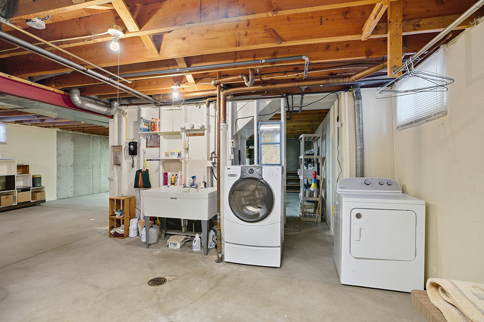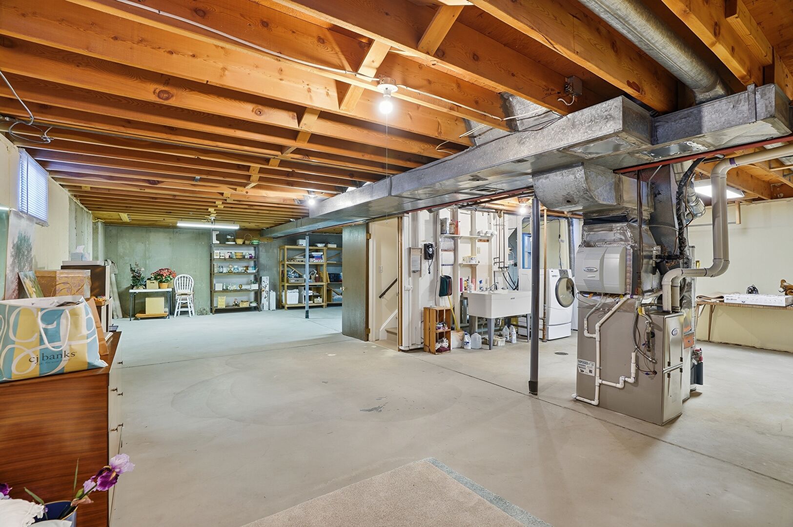 Basement, Concrete Foundation, Furnace, Washer Dryer, Laundry, Natural Light