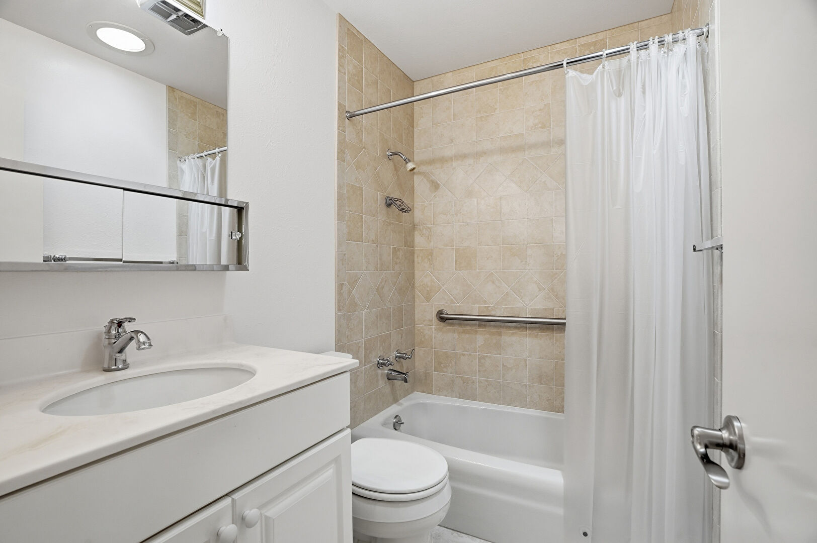 Combined Bath Shower, Drywall, Vanity, Vent, Full Bathroom
