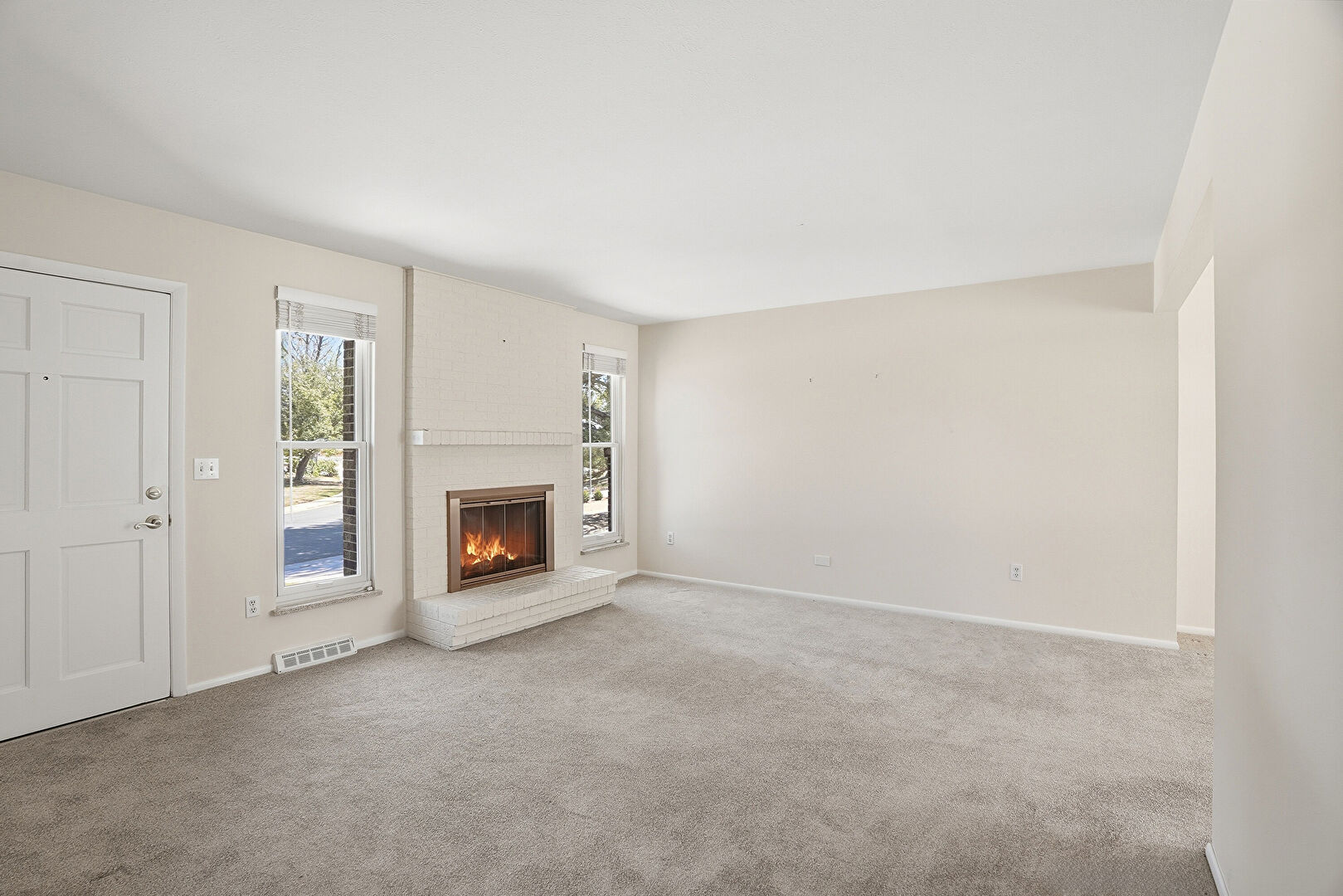 Baseboards Wall, Carpet, Drywall, Fireplace, Natural Light, Vent, Carpet, Drywall, Fireplace