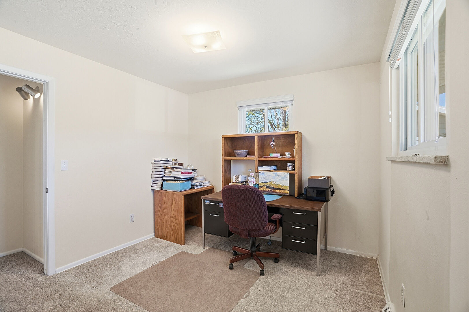 Baseboards Wall, Carpet, Closet, Drywall, Natural Light, Office Area, Vent, Baseboards Wall, Drywall