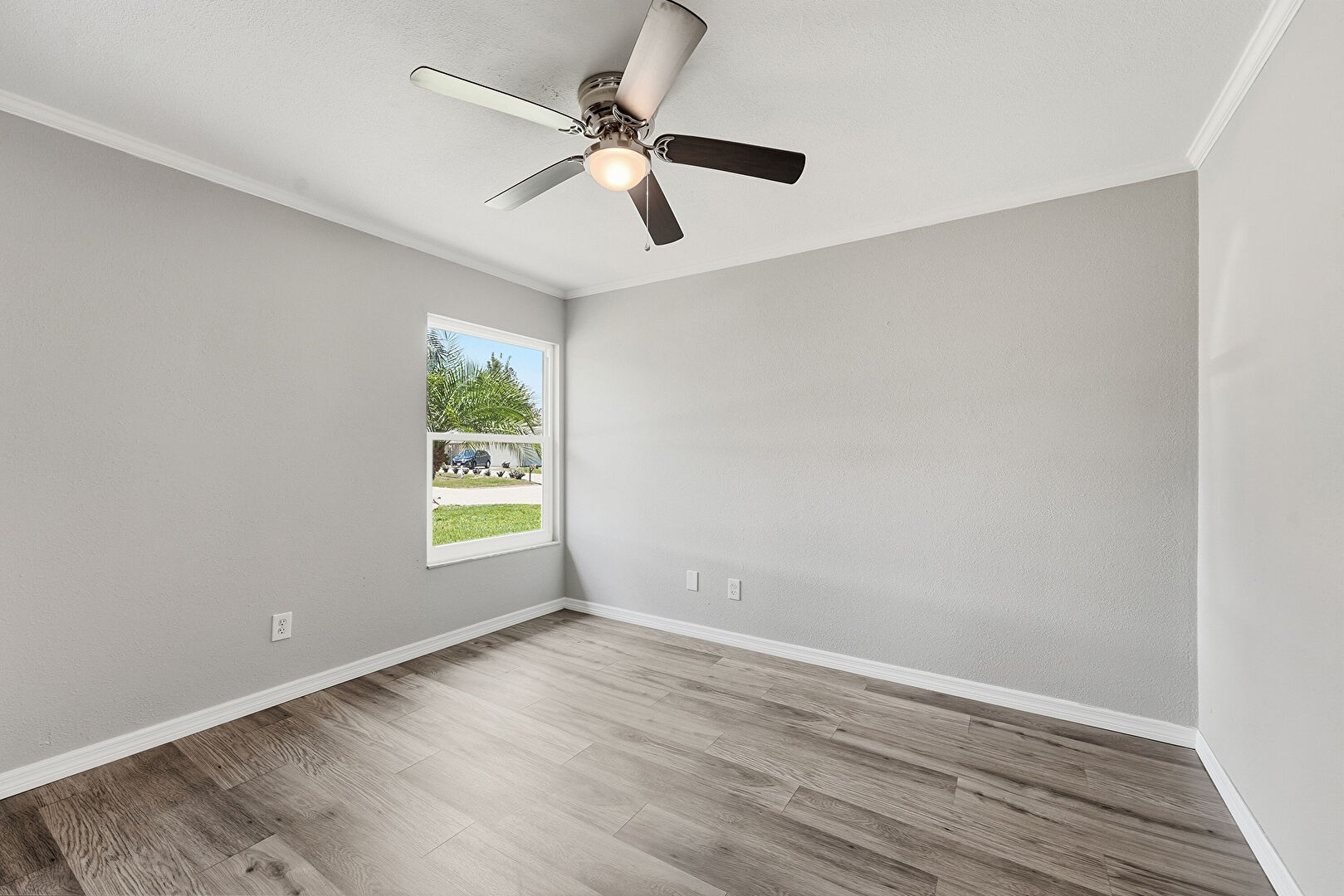 Baseboards Wall, Ceiling Fan, Closet, Crown Molding, Drywall, Natural Light, Vent, Wood Finish Floor, Ceiling Fan, Drywall, Wood Finish Floor