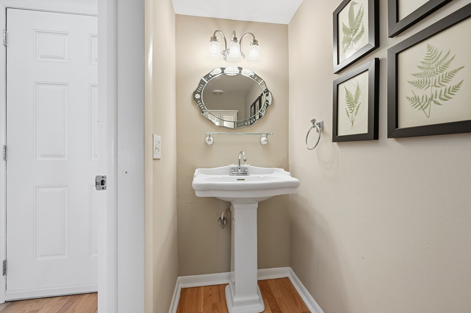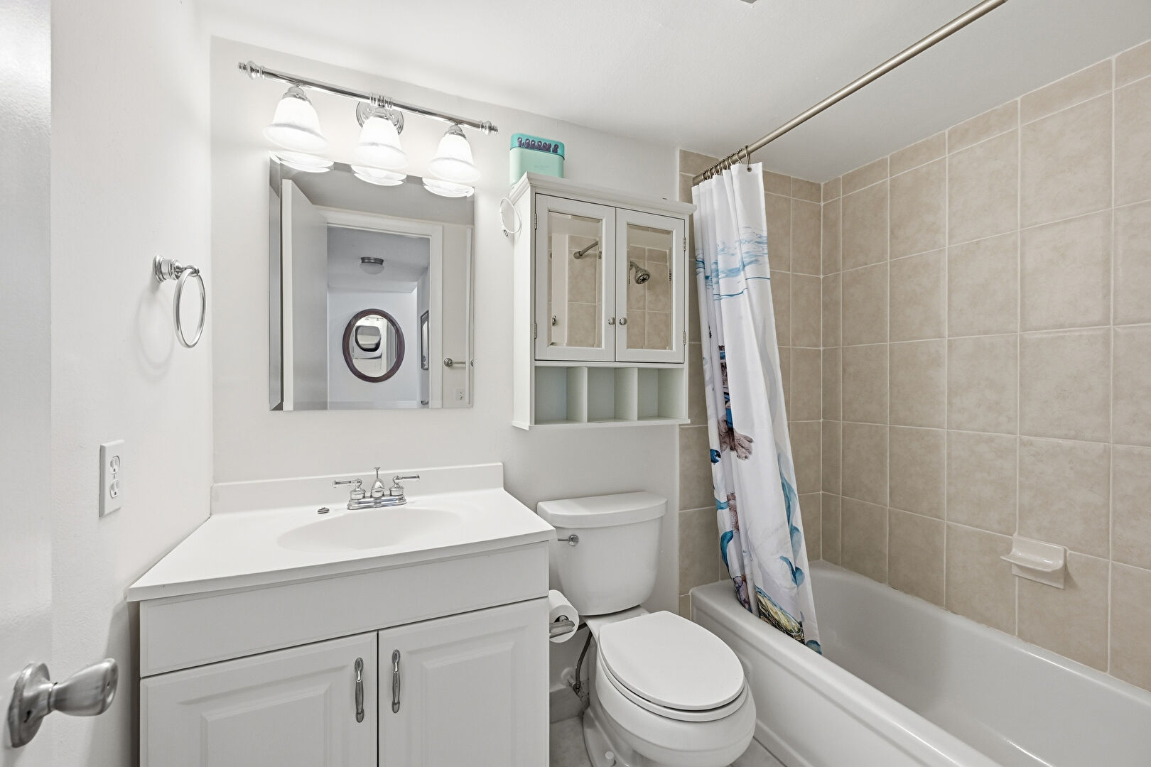 Combined Bath Shower, Drywall, Full Bathroom, Half Bathroom, Wood Finish Floor, Baseboards Wall, Drywall, Vanity