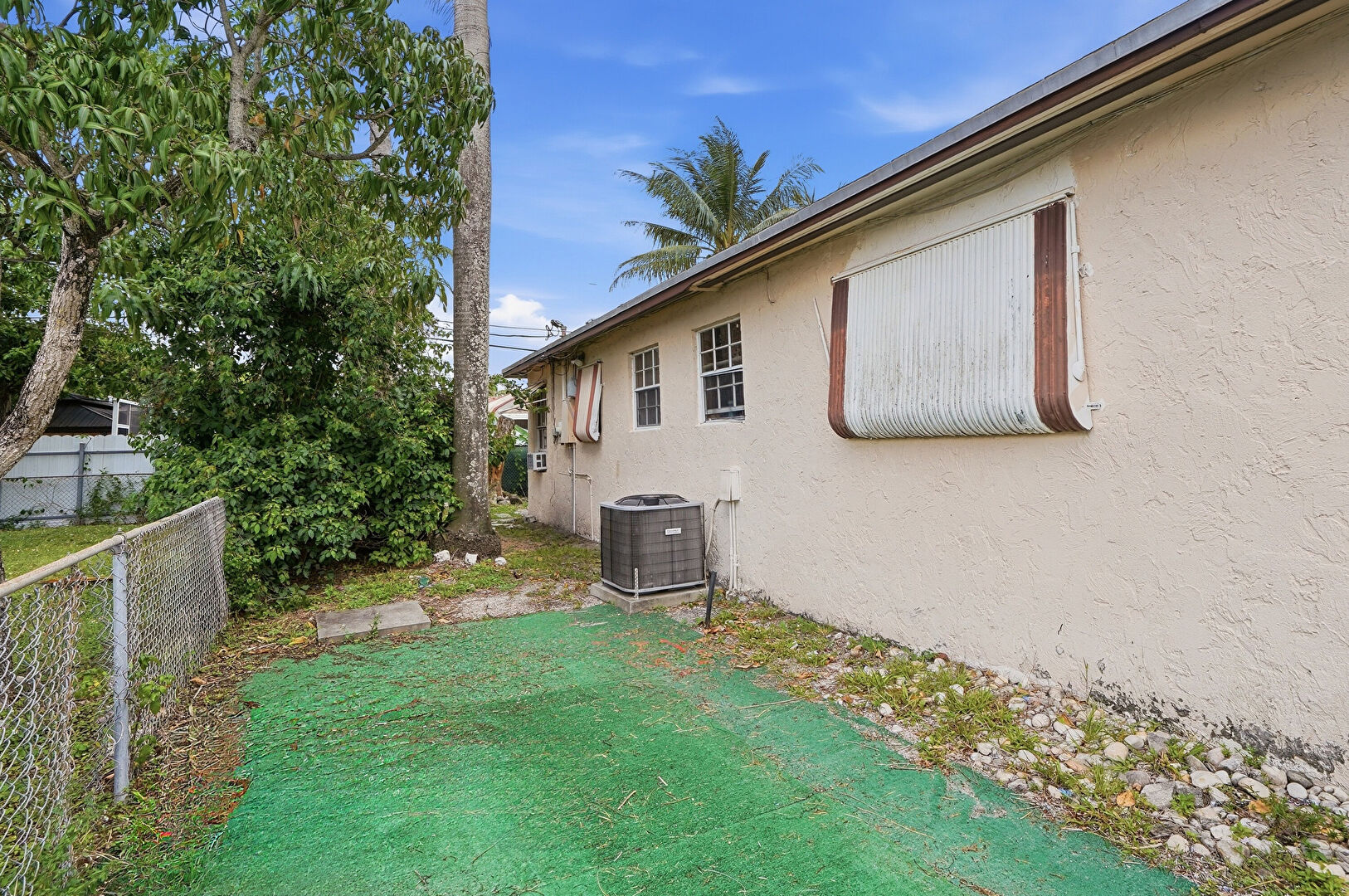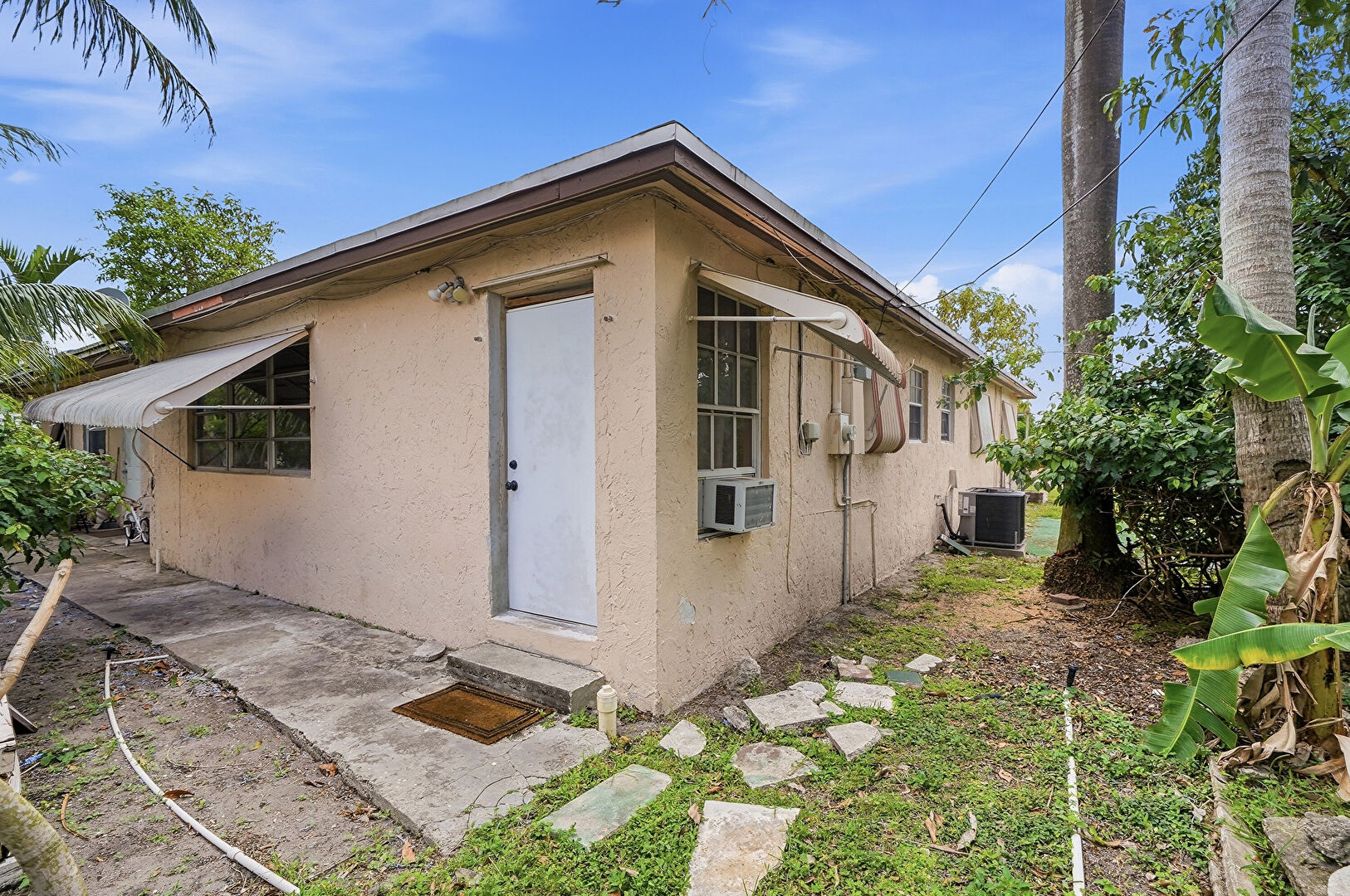 Central Ac, Electric Meter, Stucco Siding, Window Mounted Ac, Awning, Fence