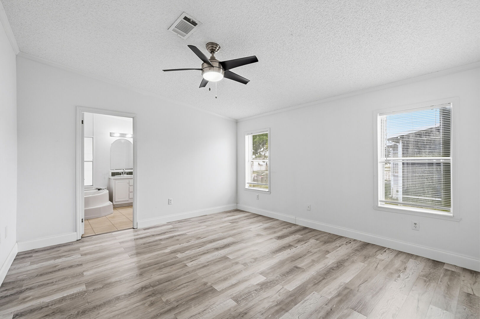 Baseboards Wall, Ceiling Fan, Crown Molding, Drywall, Ensuite Bathroom, Natural Light, Smoke Carbon Monoxide Detector, Textured Ceiling, Vent, Walk In Closet, Wood Finish Floor, Baseboards Wall, Natural Light, Vent