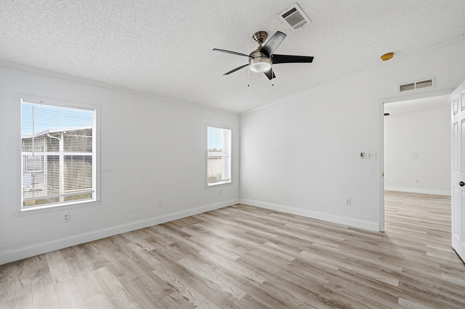 Baseboards Wall, Ceiling Fan, Crown Molding, Natural Light, Smoke Carbon Monoxide Detector, Textured Ceiling, Wood Finish Floor, Drywall