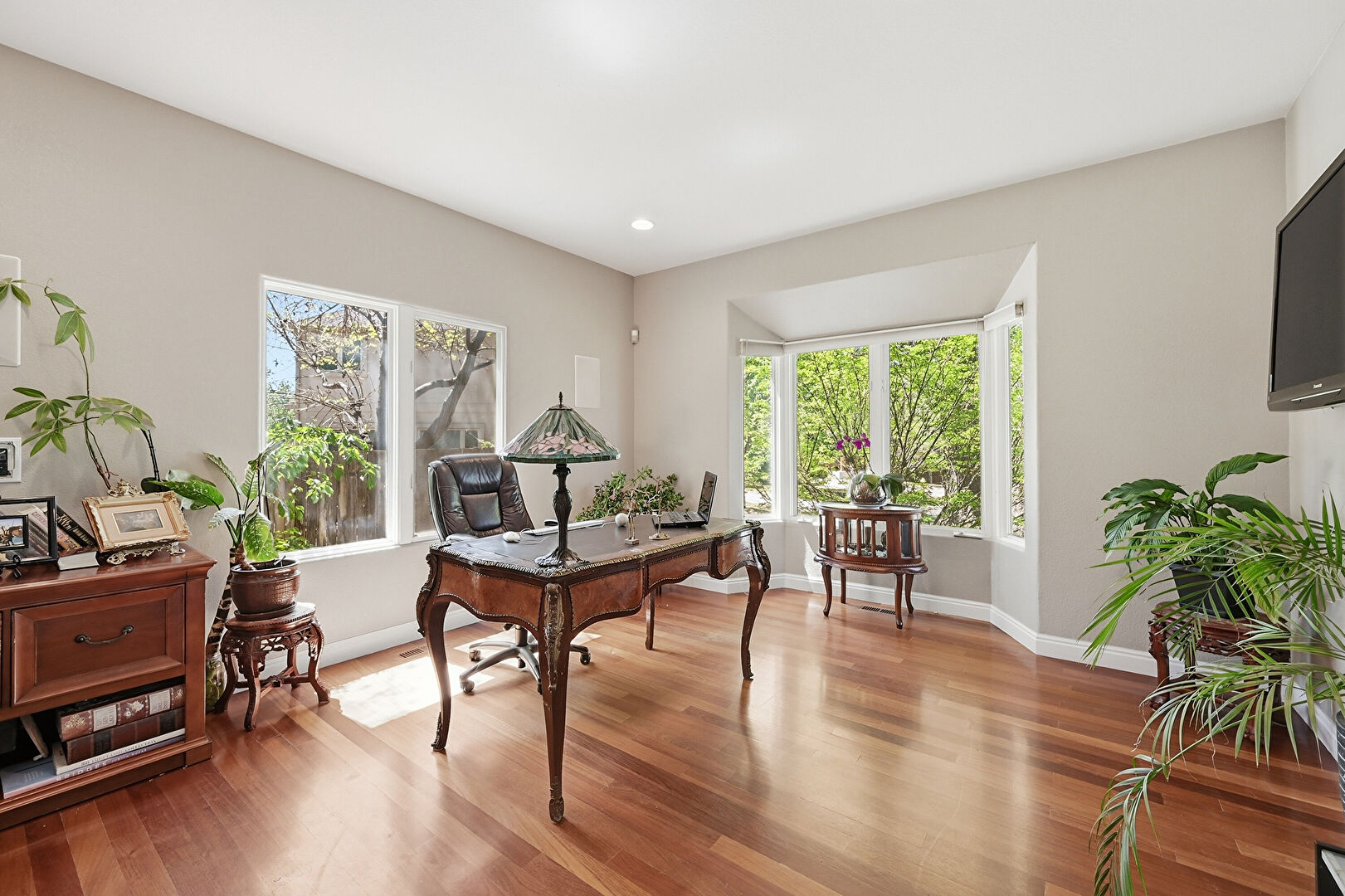 Baseboards Wall, Drywall, Natural Light, Office Area, Recessed Lighting, Wood Finish Floor