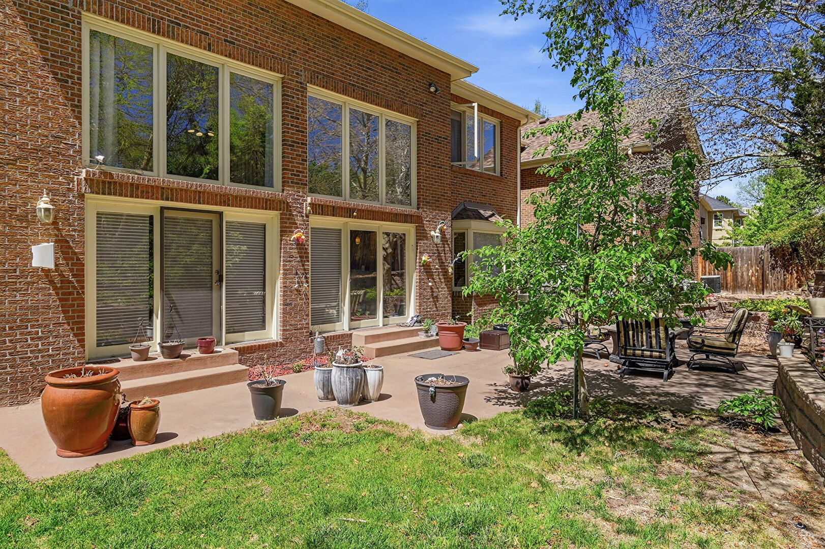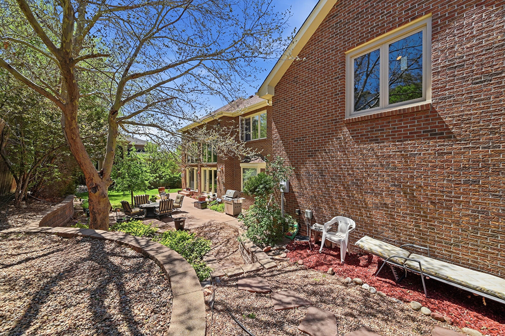 Brick Siding, Central Ac, Chimney, Downspout, Entry Steps, Fence, Fire Pit, Garden, Grill, Gutters, Lawn, Outdoor Dining Area, Outdoor Living Space, Patio, Central Ac, Electric Meter, Gutters, Lawn, Patio