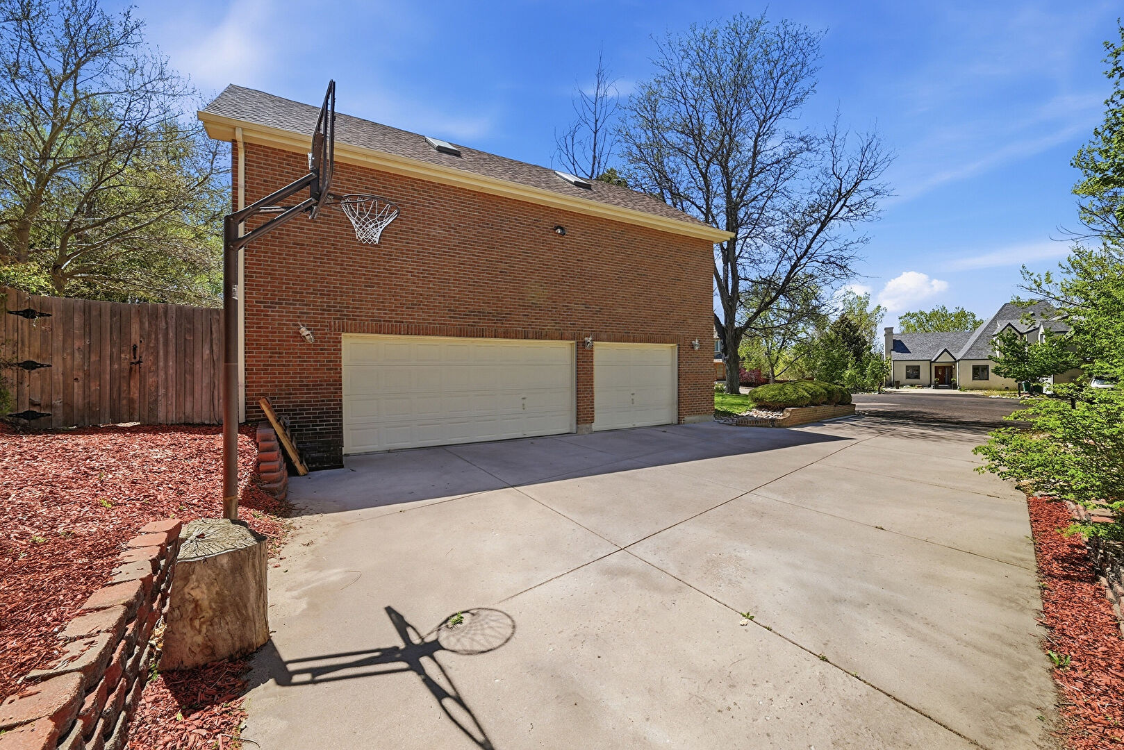 Brick Siding, Built In Garage, Downspout, Driveway, Fence, Gutters, Lawn, Brick Siding, Downspout, Gutters