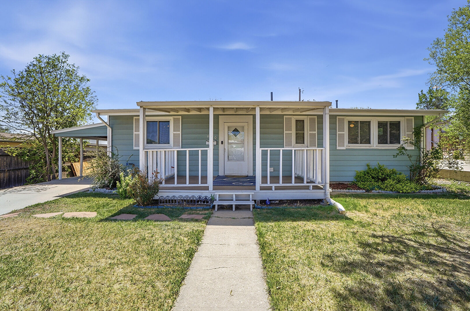 Attached Carport, Downspout, Driveway, Fence, Gutters, Horizontal Siding, Lawn, Porch, Gutters, Horizontal Siding, Lawn