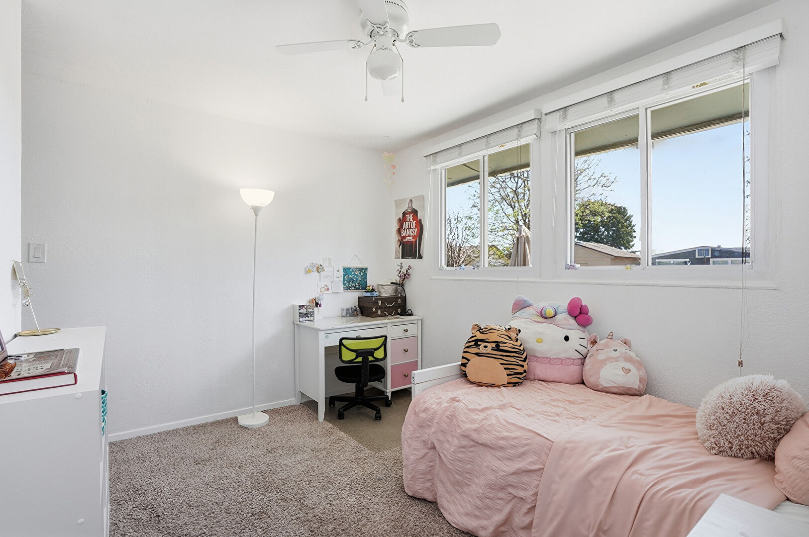 Baseboards Wall, Carpet, Ceiling Fan, Natural Light, Drywall