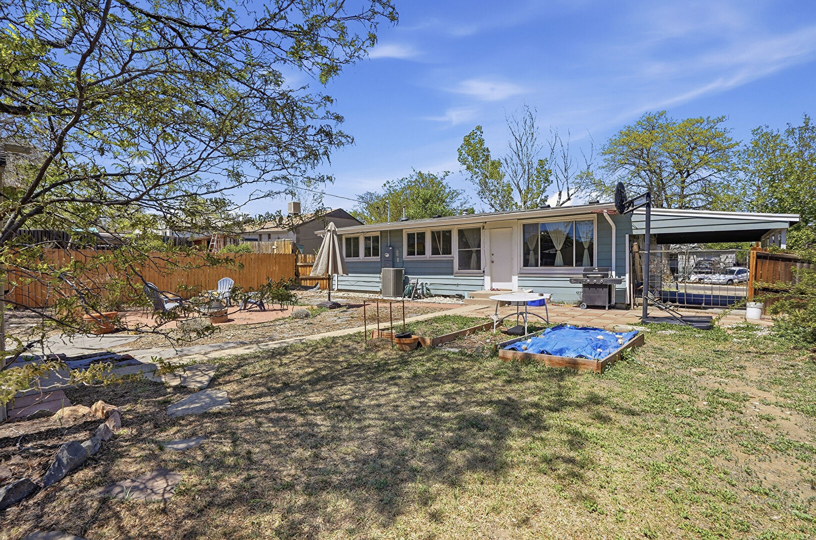 Attached Carport, Central Ac, Concrete Foundation, Downspout, Electric Meter, Entry Steps, Fence, Fire Pit, Garden, Grill, Gutters, Horizontal Siding, Lawn, Outdoor Structure, Patio, Shed, Sunroom, Electric Meter, Fence, Garden, Patio