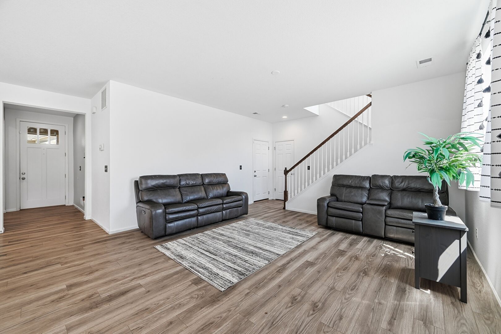 Baseboards Wall, Drywall, Natural Light, Recessed Lighting, Vent, Wood Finish Floor, Drywall, Stairs