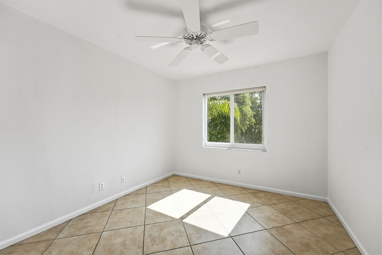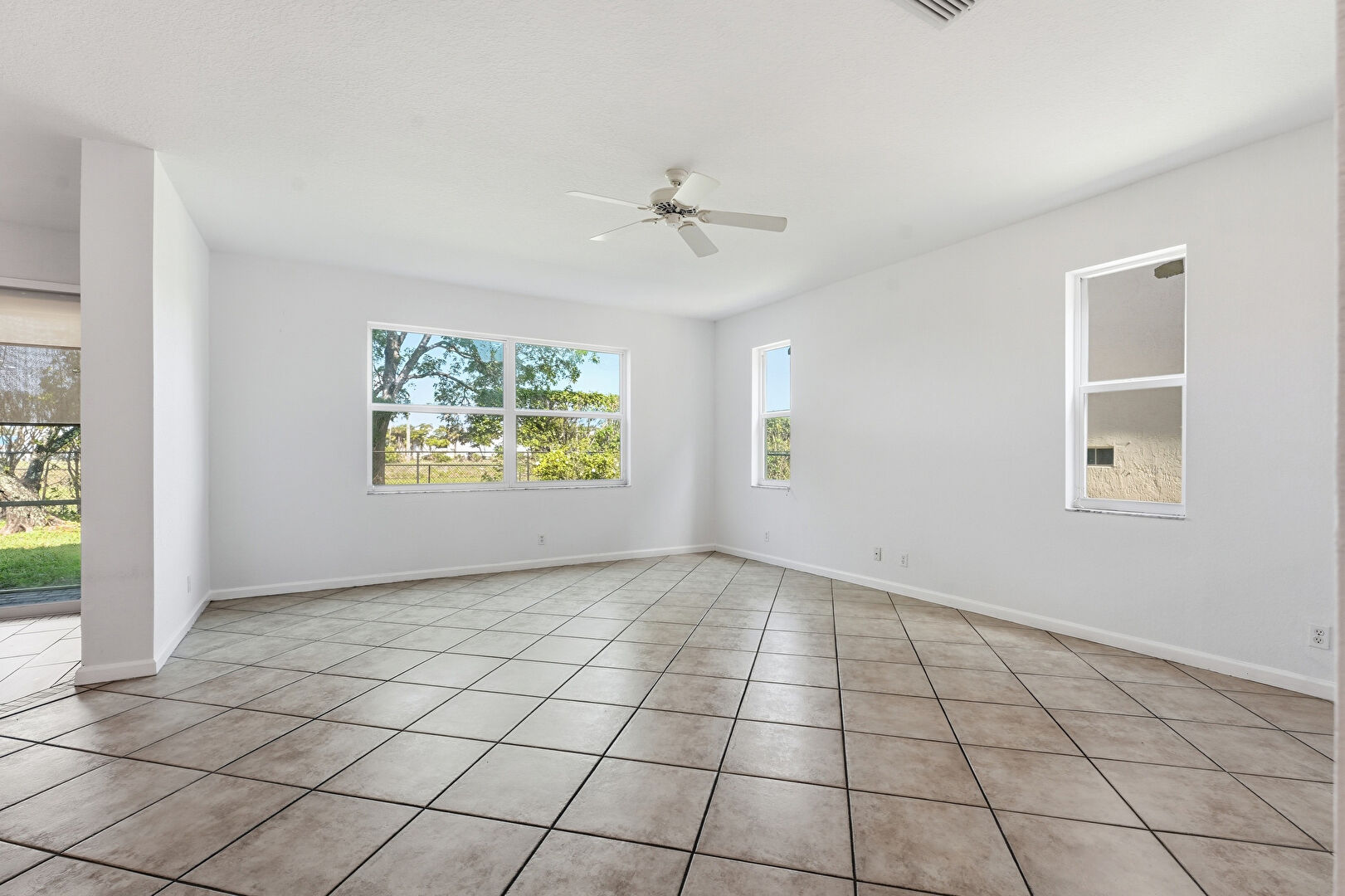 Baseboards Wall, Ceiling Fan, Drywall, Natural Light, Vent, Tile Floor
