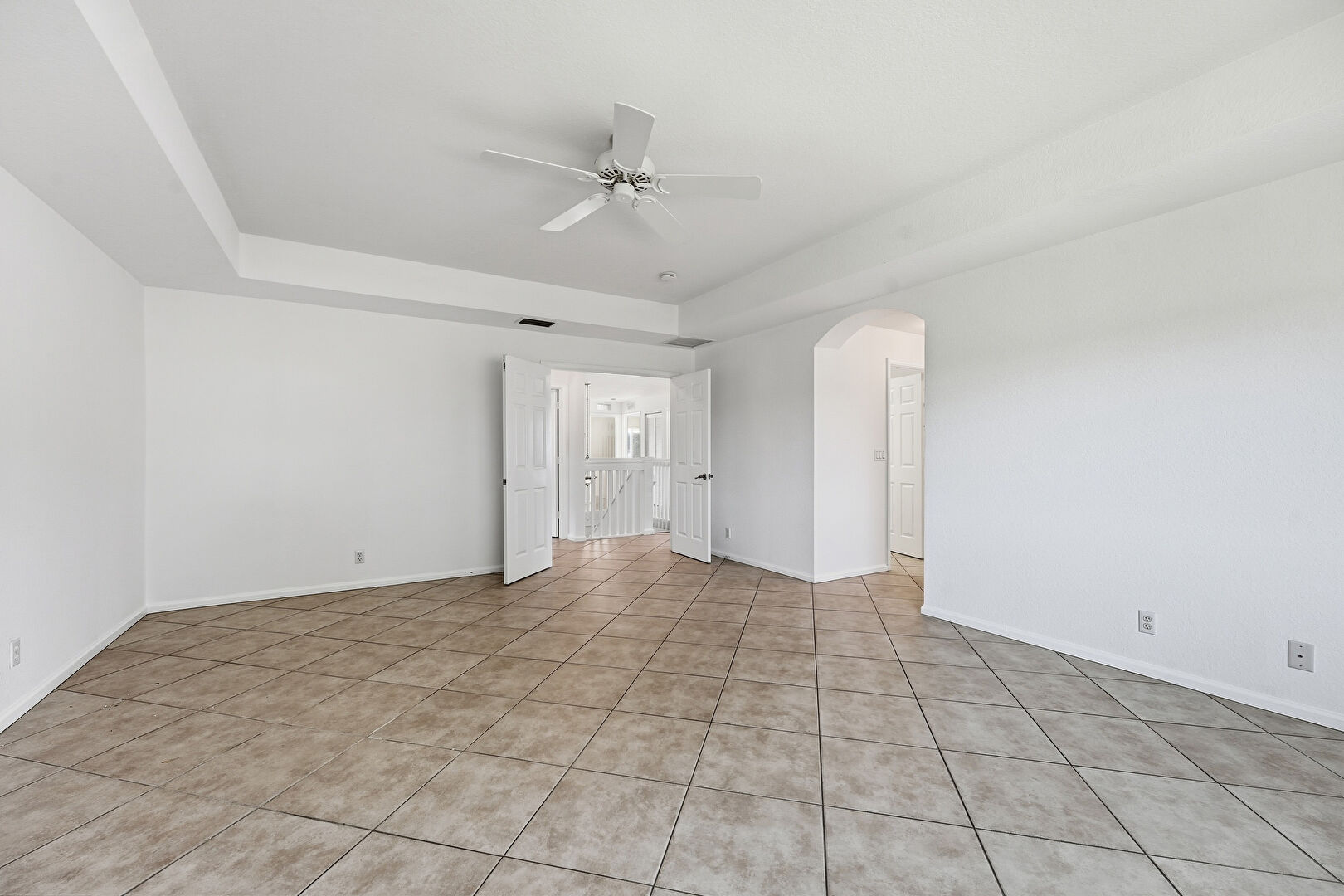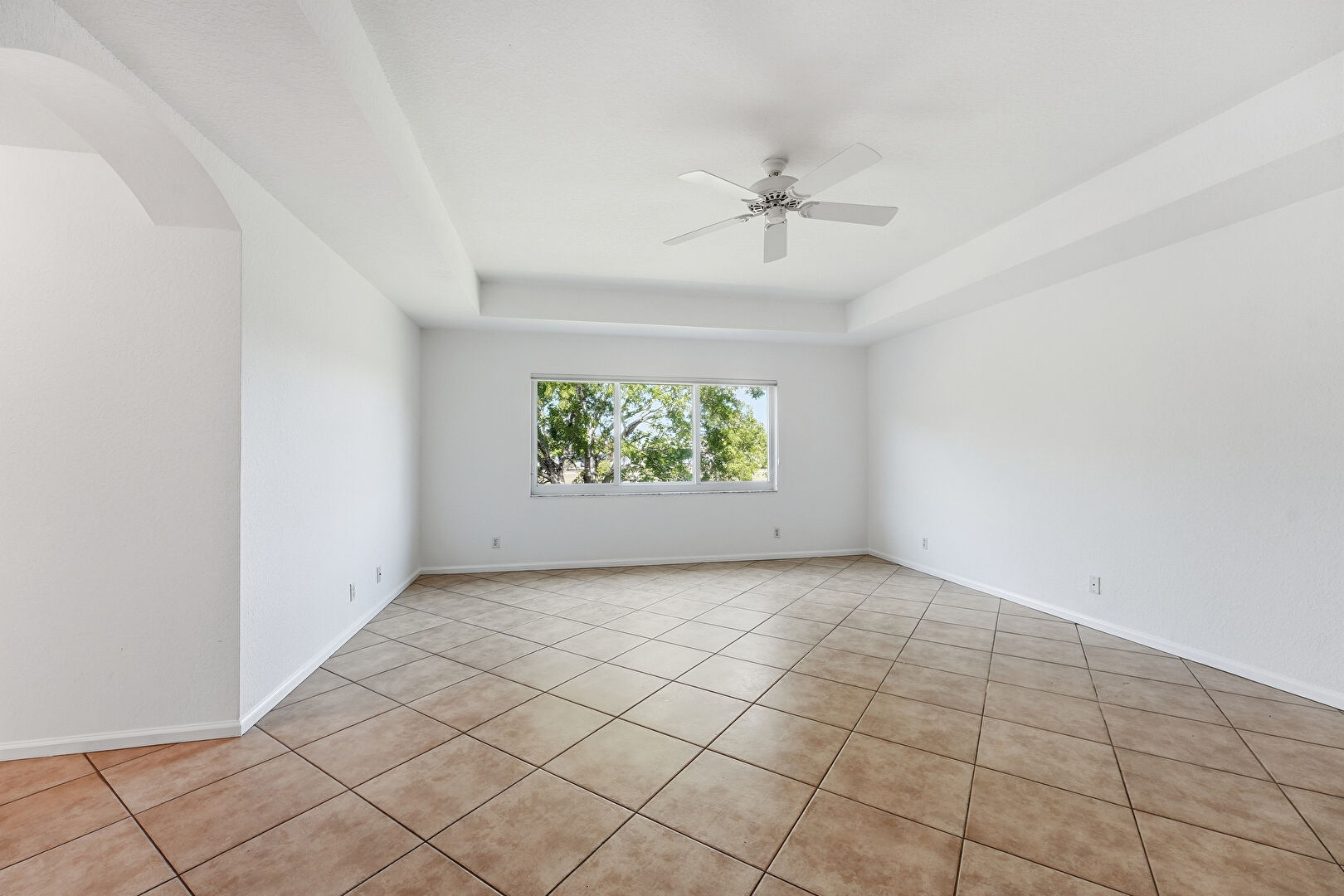 Arched Walkways, Baseboards Wall, Ceiling Fan, Drywall, Natural Light, Smoke Carbon Monoxide Detector, Tile Floor, Tray Ceiling, Arched Walkways, Natural Light, Vent