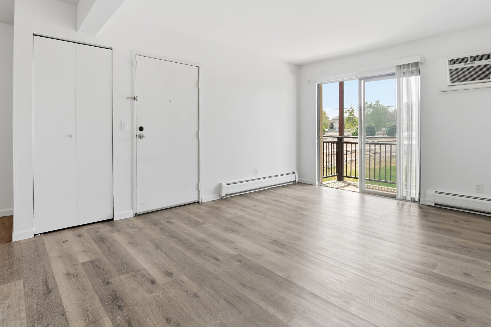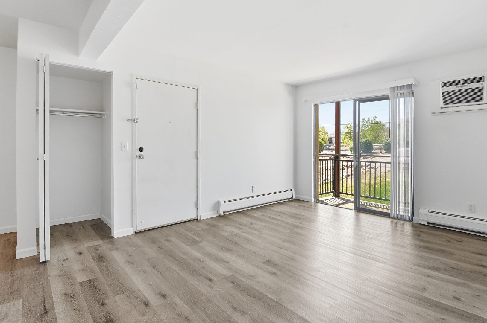 Baseboard Radiator, Baseboards Wall, Closet, Drywall, Natural Light, Wall Mounted Ac, Wood Finish Floor, Access To Exterior