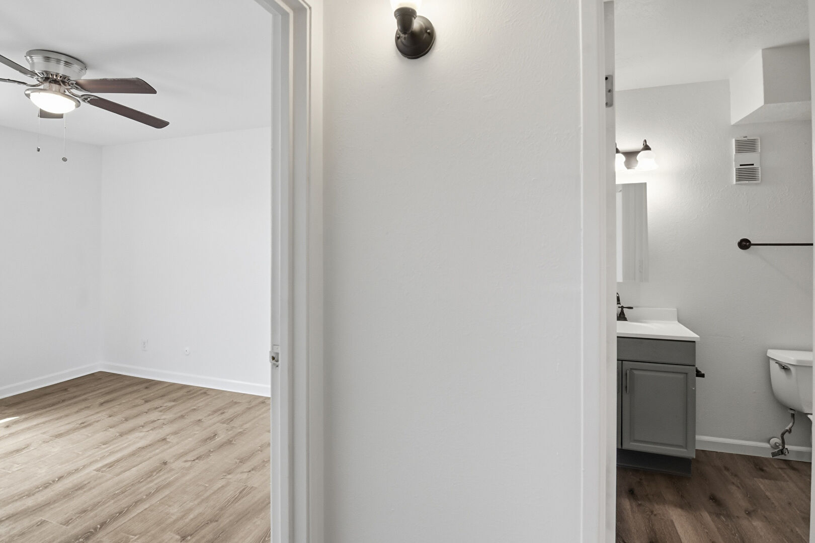Baseboards Wall, Ceiling Fan, Combined Bath Shower, Drywall, Full Bathroom, Half Bathroom, Vanity, Wood Finish Floor, Closet, Vent, Wood Finish Floor