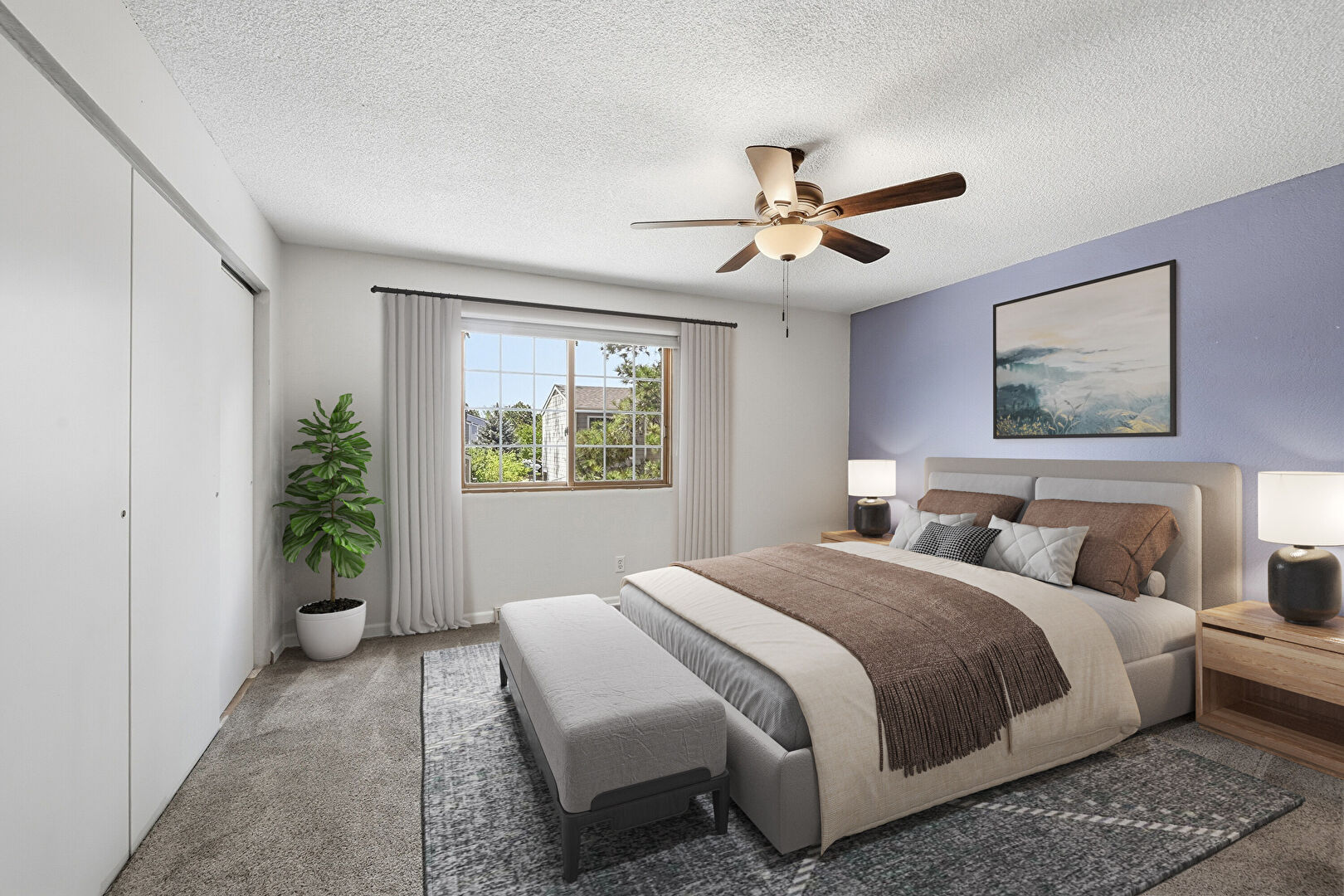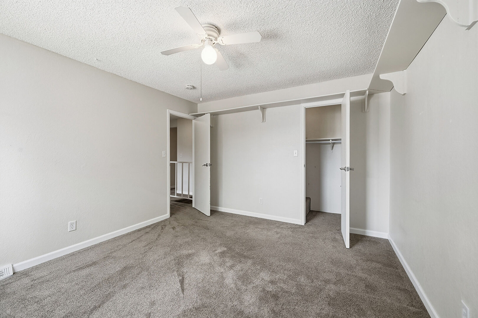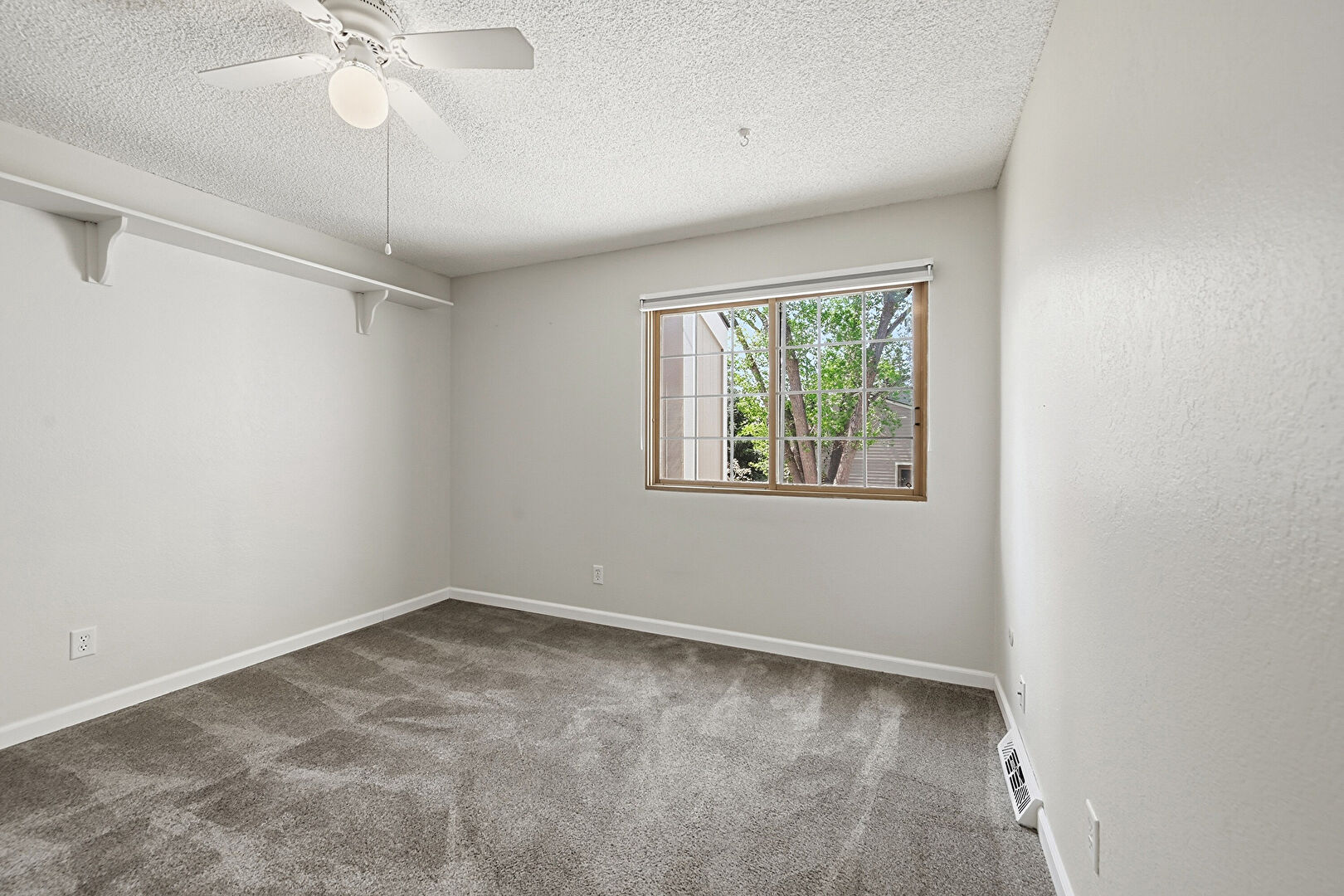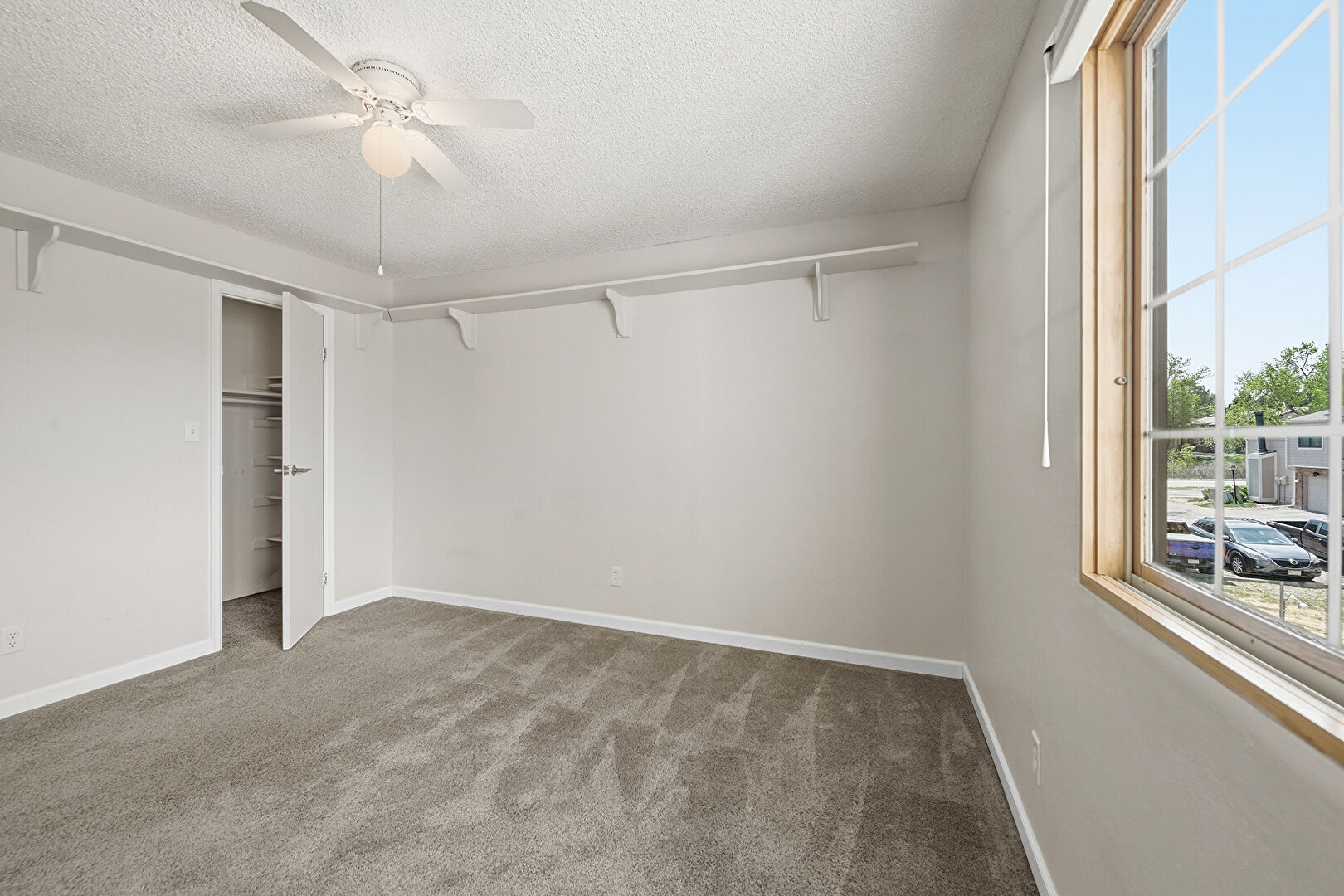 Baseboards Wall, Carpet, Ceiling Fan, Closet, Drywall, Smoke Carbon Monoxide Detector, Textured Ceiling, Vent, Carpet, Natural Light