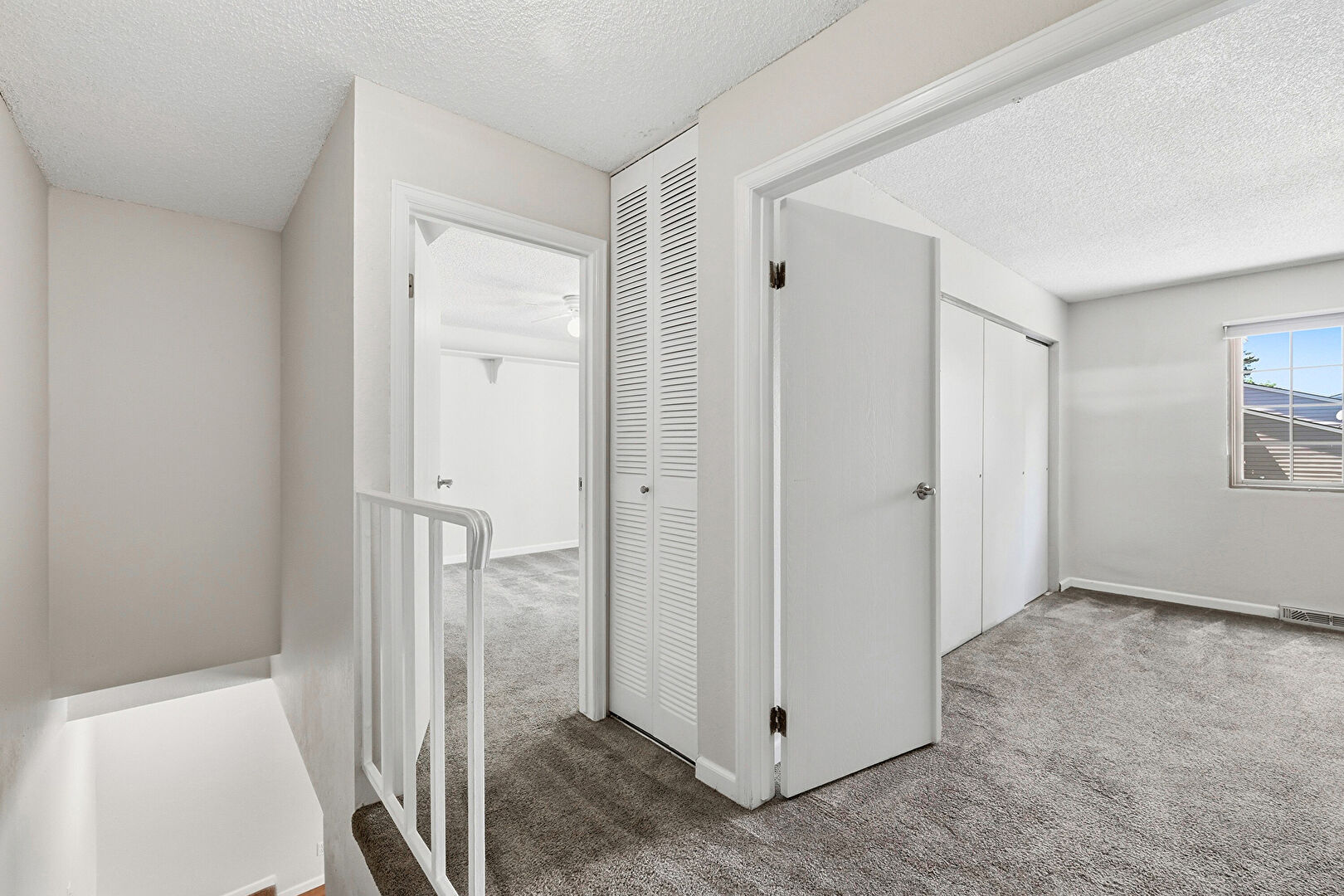 Baseboards Wall, Carpet, Drywall, Natural Light, Textured Ceiling, Upstairs Landing, Vent