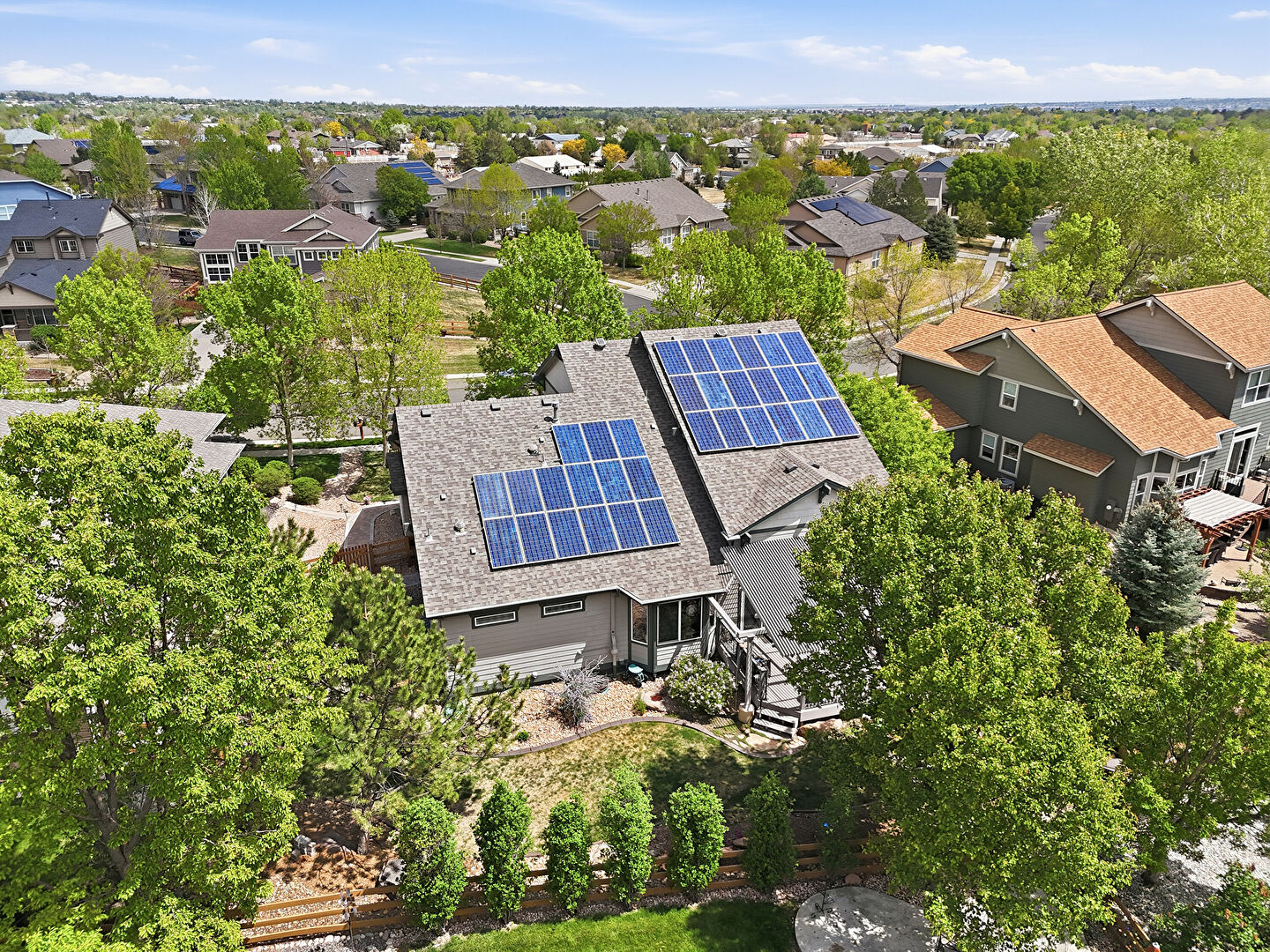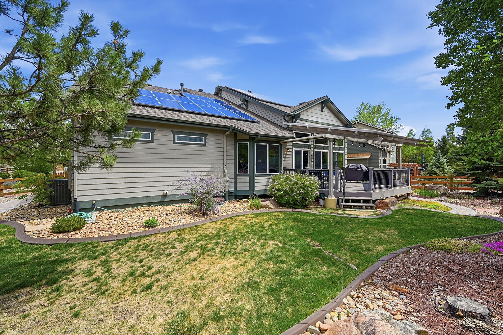 Central Ac, Concrete Foundation, Deck, Downspout, Fence, Gutters, Horizontal Siding, Lawn, Shingle Roof, Solar Panels, Fence, Grill