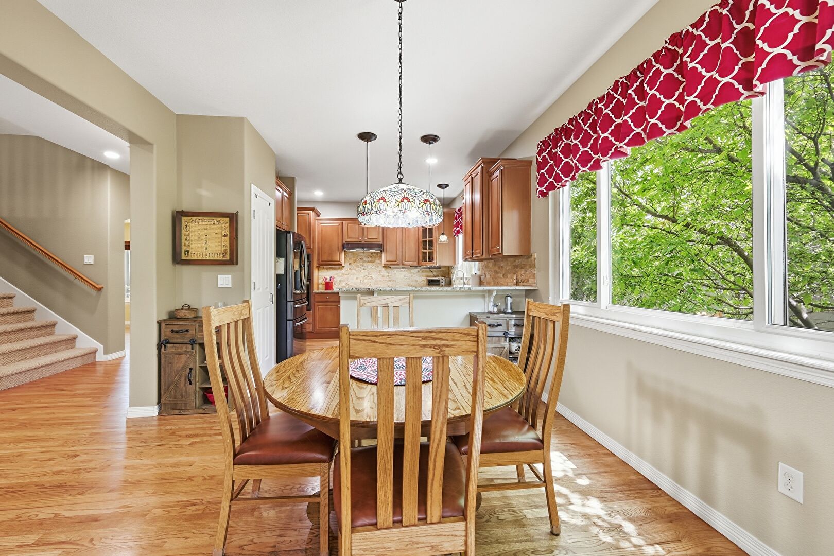 Baseboards Wall, Drywall, G Shaped Kitchen, Natural Light, Recessed Lighting, Stairs, Wood Finish Floor, Natural Light, Wood Finish Floor